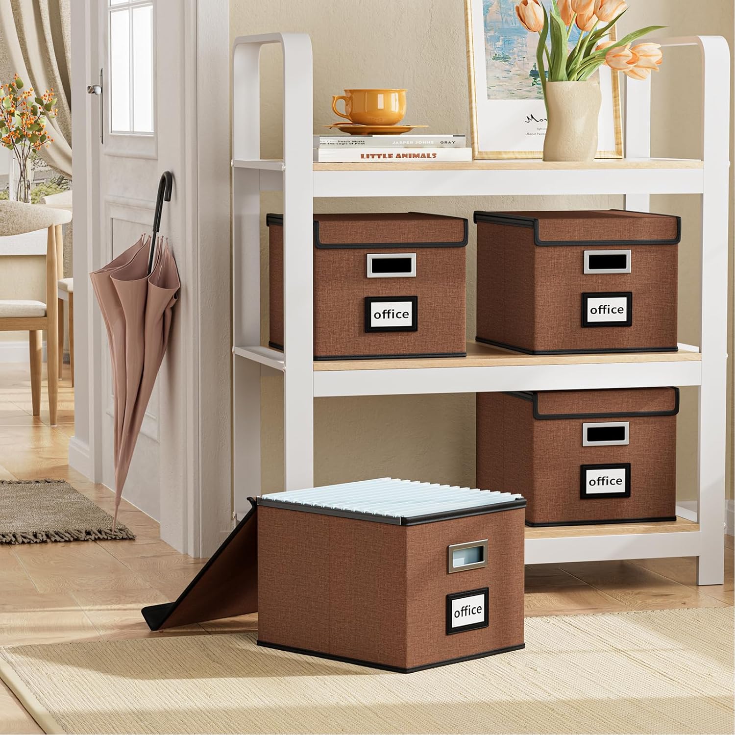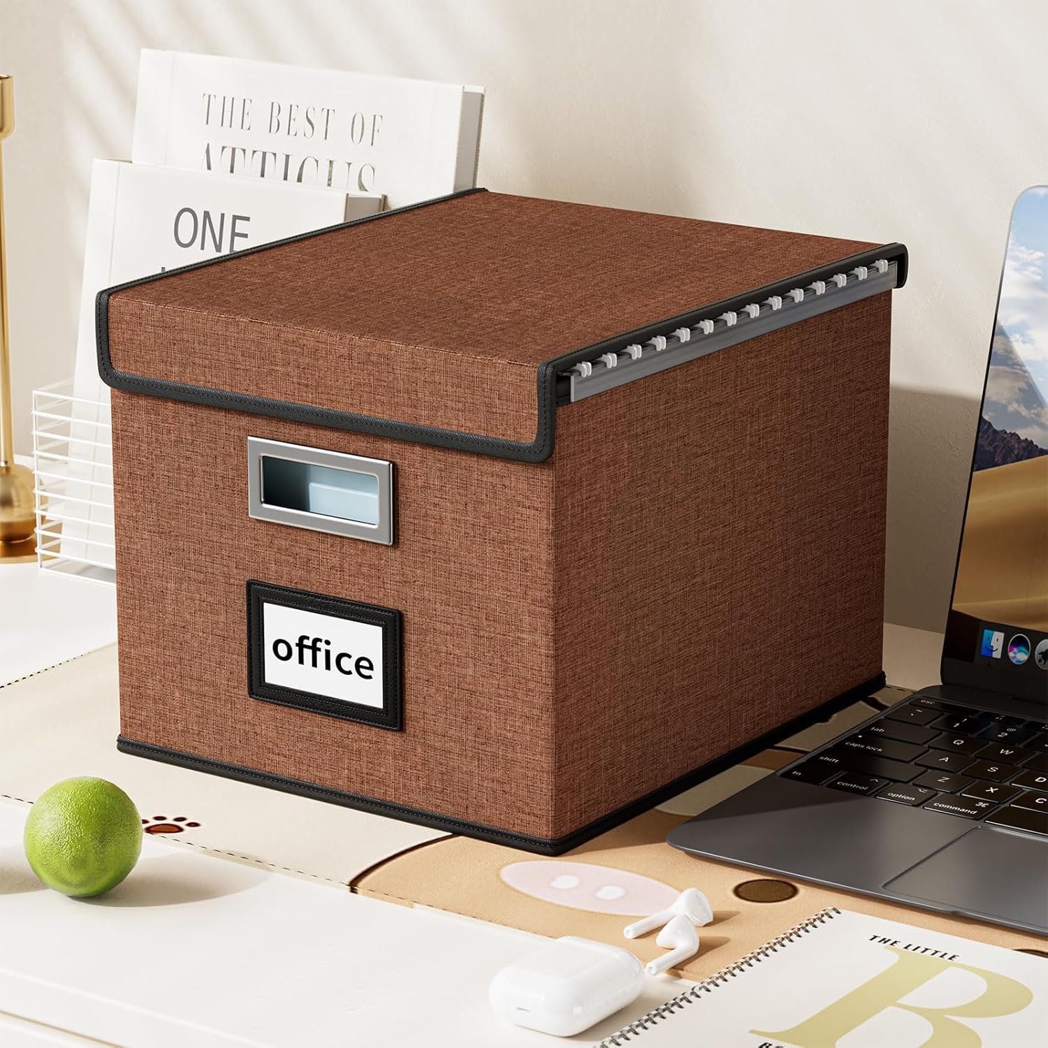 Huolewa Upgrade Portable File Organizer Box with Lid,Large Linen Hanging Office Document Storage Box with Lid,Collapsible Filing&Storage Box for Office/Decor/Home-14.9x12.7x10.8in,1pk-without folders