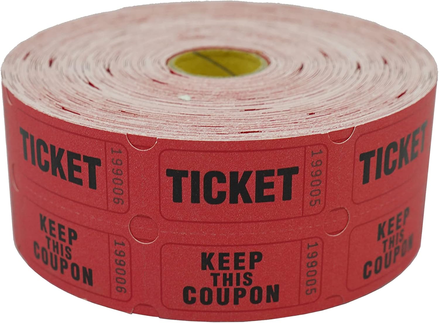 DNB 1000 Raffle Tickets - Double Roll 1000 Pairs per Roll 2 x 2 Inch 50/50 Consecutively Numbered Tickets for Entry/Events/Fundraiser/Prizes - Red