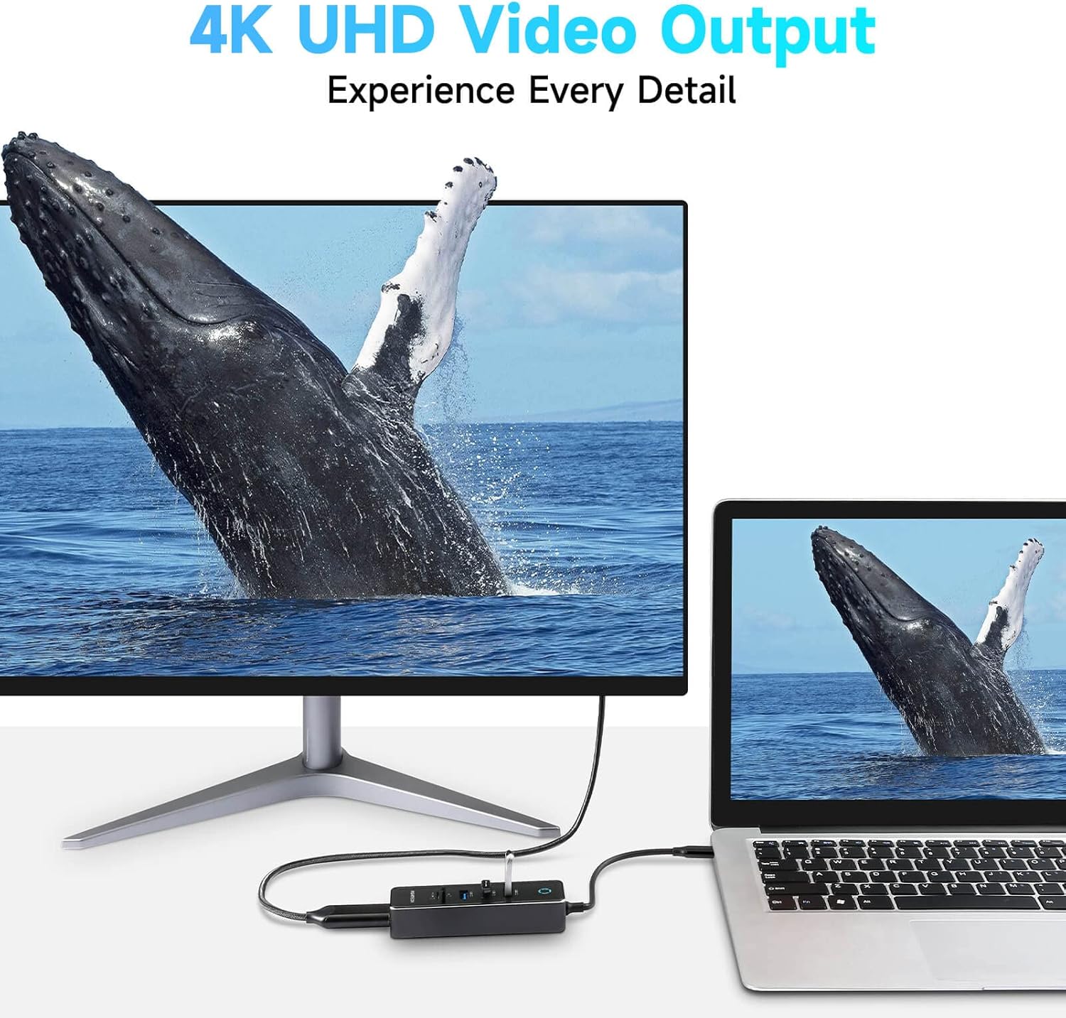 - 4K USB C to HDMI Adapter: USB C to HDMI hub provides you with lifelike 4K@30Hz HDMI images and directly streams 4K UHD @ 30Hz or full HD 1080P video to HDTV, monitor or projector. You can enjoy movies with your family on the big screen, or give lively presentations in meetings, etc