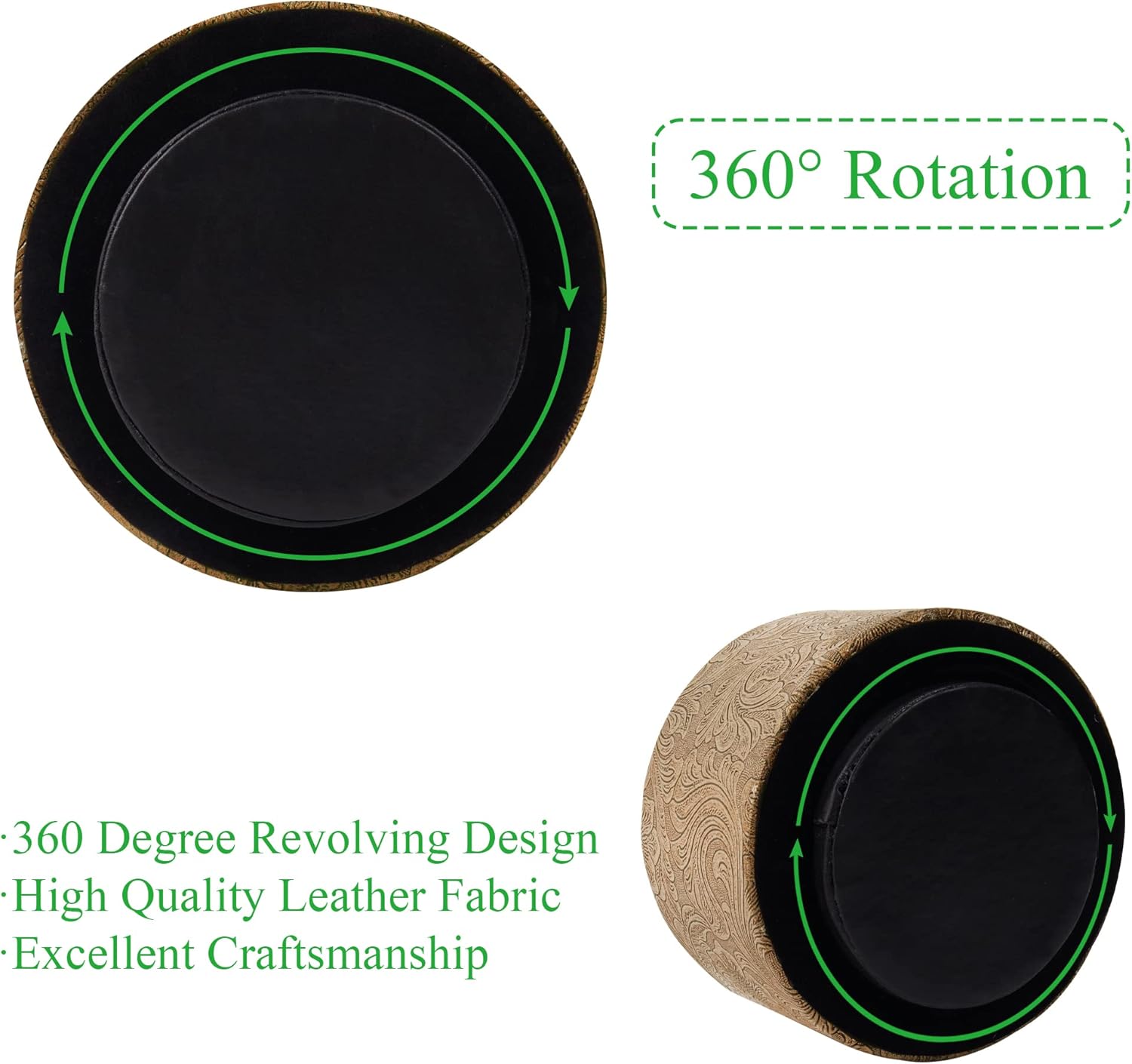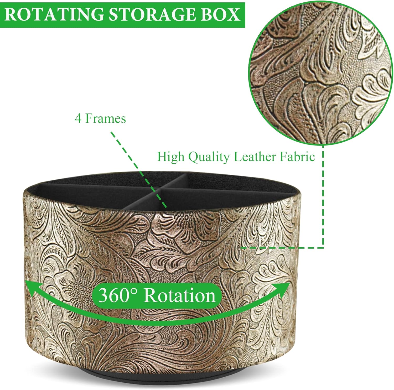 lizimandu Round Leather Art Supply Organizer,Remote Control Holder,360 Degree Spinning,Multi-Functional Pencil Holder,4 Compartments Desktop Stationary Organizer(1-Gold)