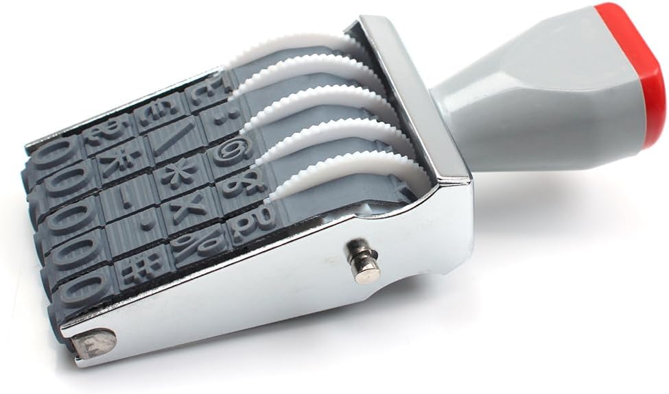 - 5 Digit Rubber Number Stamp, There are a total of 5 plastic wheel rotating belts. The rotating belt contains ten Arabic numerals from 0 to 9 and some symbols. Each rotating belt can be freely rotated, and you can manually arrange the numbers or symbols you want. Arabic numerals have 0-9 (10 digits) and symbols