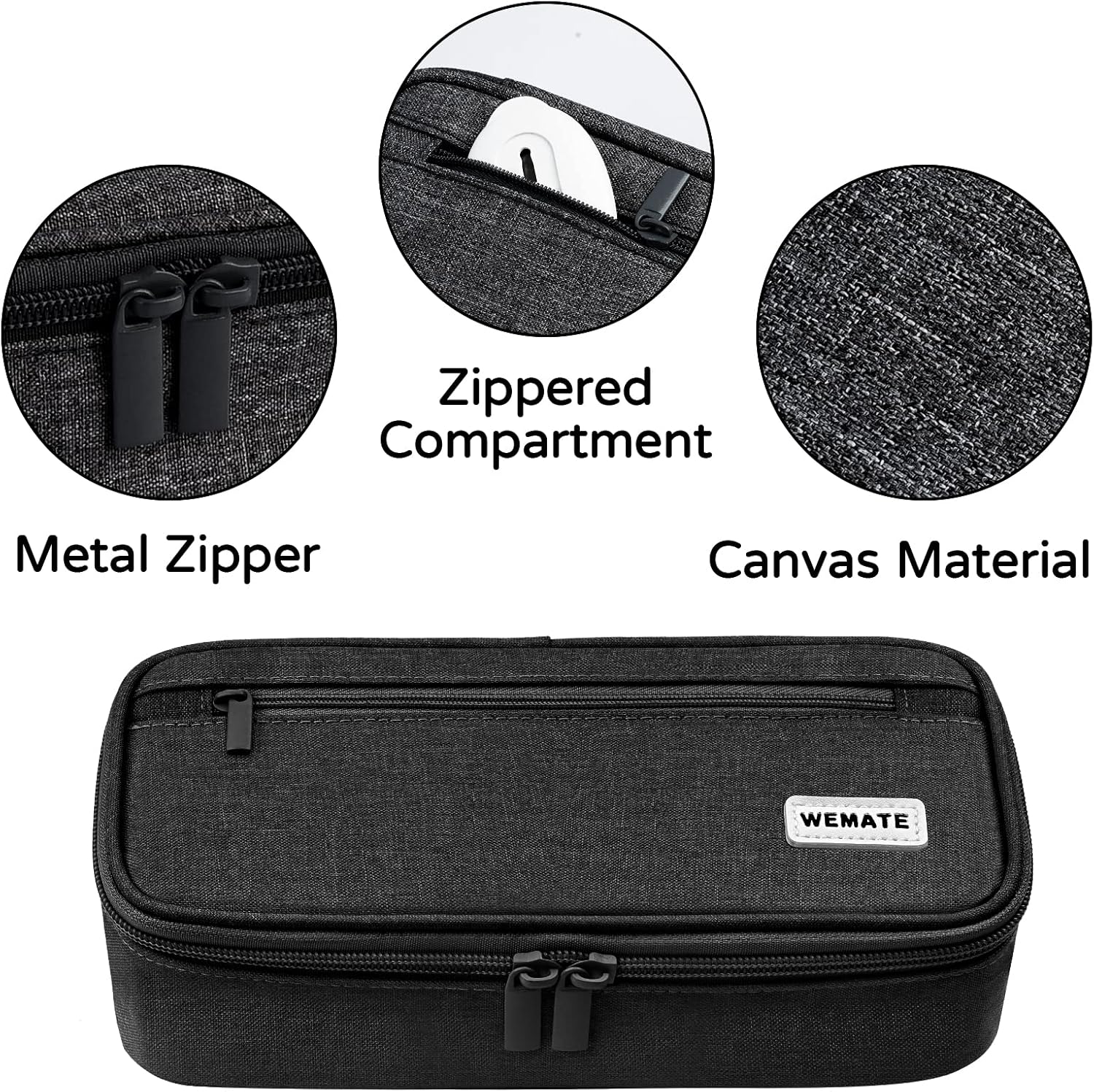 - Premium Canvas: WEMATE large-capacity pencil holder is made of 100% high-quality canvas, is strong and durable. Fine workmanship and provide you with dust-proof, not easy to damage pencil pouch.well-crafted and subjected to strict quality inspection, that not only looks great but will last for years to come