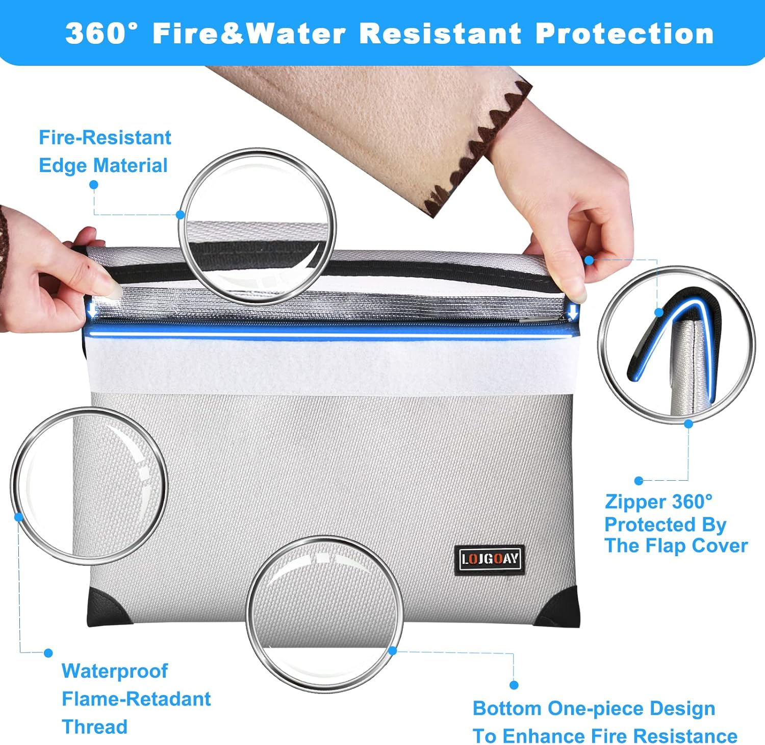 - 🔥TOP FIREPROOF DESIGN: Recommended by professional firefighters and tested in the most demanding environments,Our fireproof bag mainly adopt a 8-layer function material structure of fire protection and heat insulated. The fire safe bag is sewn with flame-retardant thread and fireproof hemming, to prevent fire from damaging the fireproof bag from the edge, closure by flap, so that its zipper completely prevent fire,which make the fire safe bag 360° fire resistant