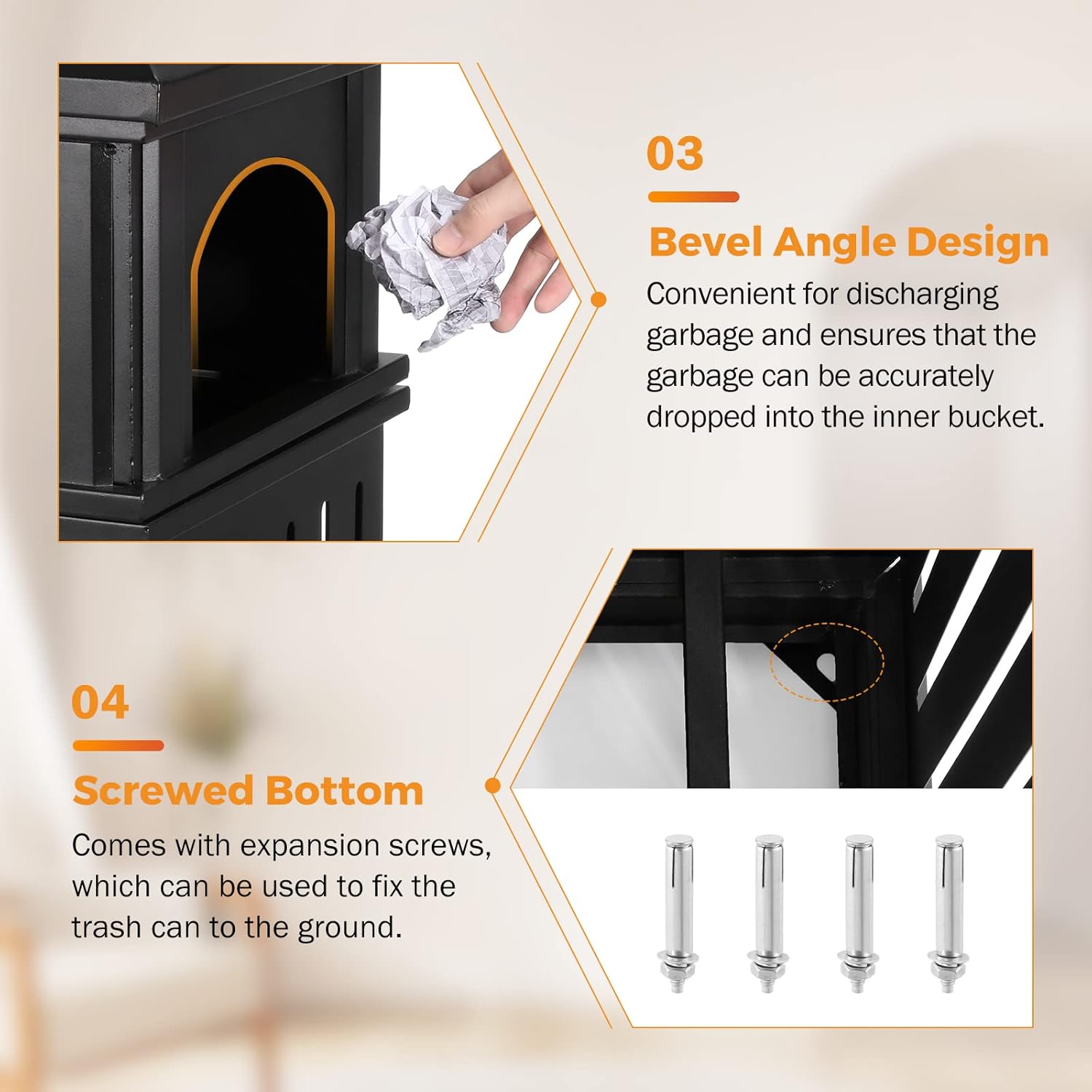 - MODERN STYLE - BEAMNOVA Outdoor/Indoor Steel Trash Can with Ash Urn features two stylish perforated panels, two convenient openings, and a stainless steel ash*tray that enhances high traffic areas while keeping them clean and litter-free.