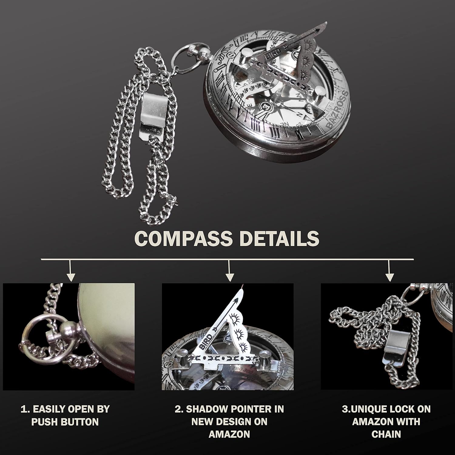 - Functional Elegance: Silver brass finish and high-quality craftsmanship make this pocket sundial compass a functional and elegant addition to any antique décor collection