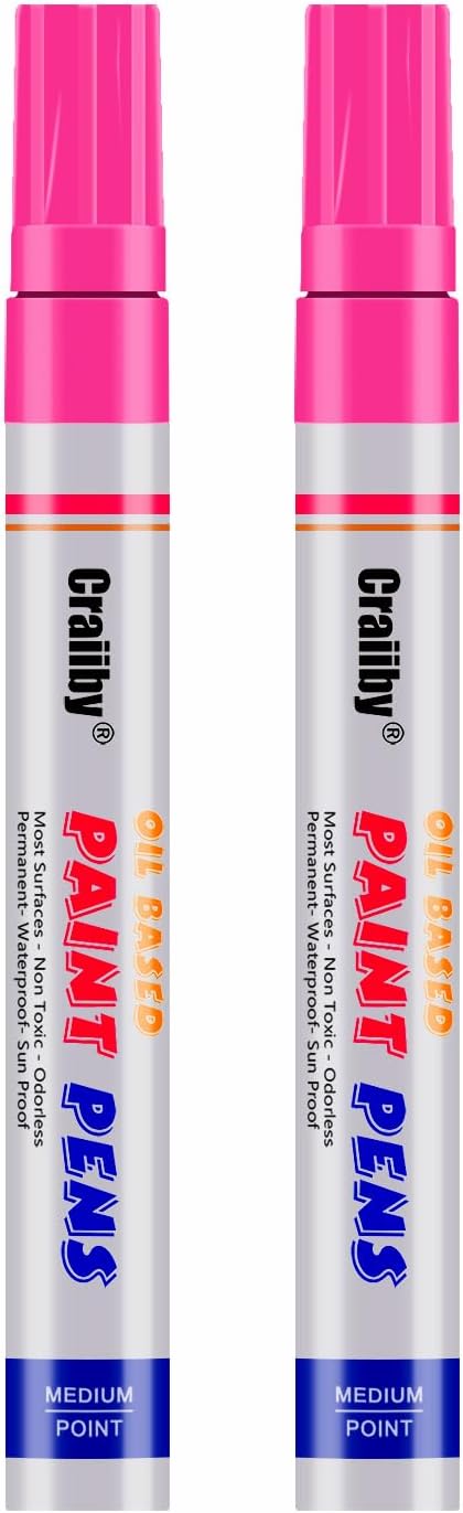 Pink Paint Markers, 2 Pack Oil-Based Waterproof Quick Dry Permanent Paint Pen Set for Rocks Painting, Wood, Fabric, Plastic, Canvas, Glass, Mugs, Metal, Tire, Stone, DIY Craft
