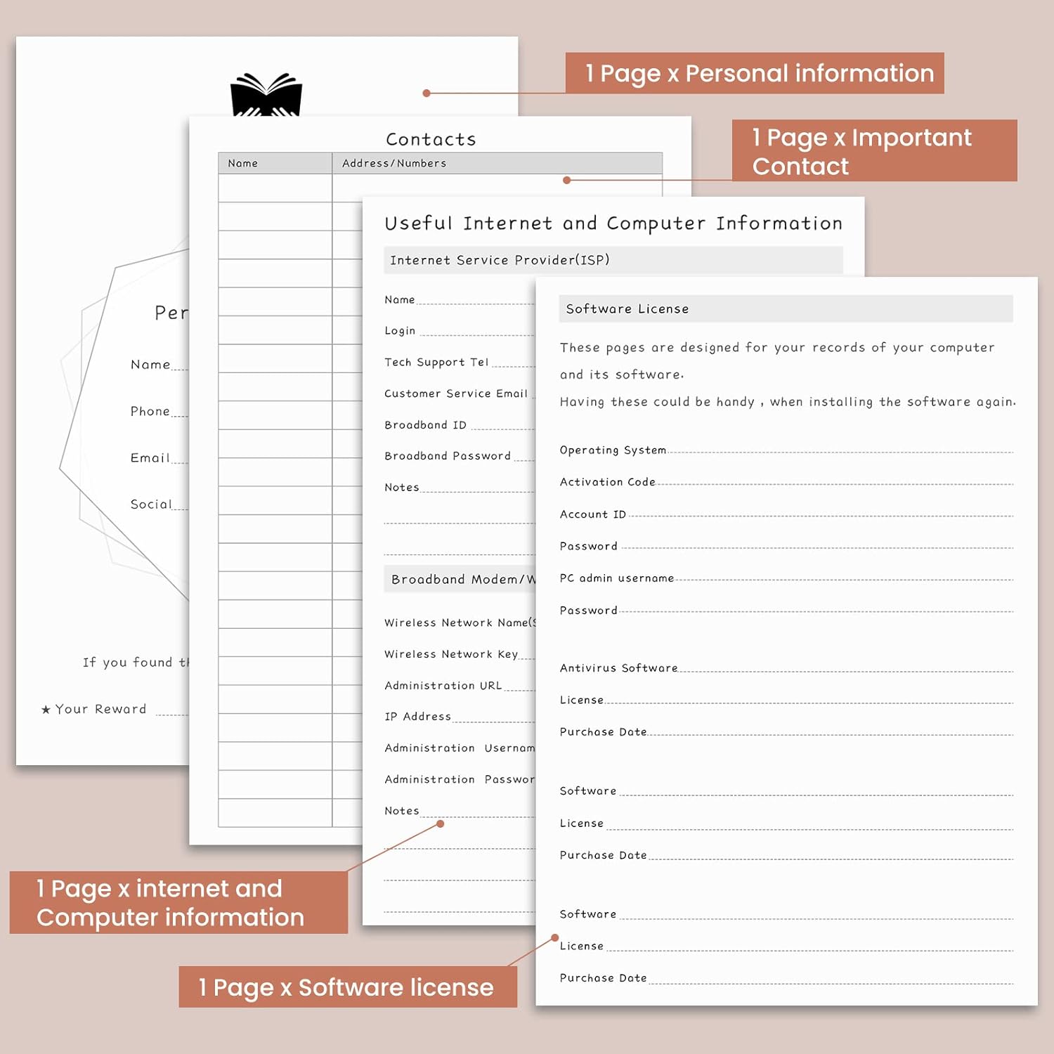 - 【Keep Your Password Safe】A paper password book is one of the safest ways to store your website information. Password Book gives you the opportunity of a safe password organization in one place that no hacker can reach.