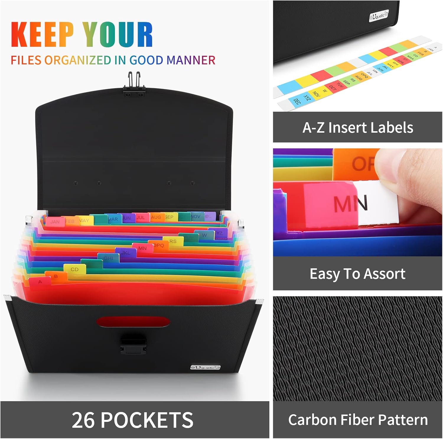 - ✔【 26 Pocket Large Capacity 】The file organizer has 26 A4/ letter size compartments that keep each slot's papers separated and organized. Product Size: 13.15’’x 11’’x 3.94’’/ 33.4x 28x 10CM. With colourful tags/ labels for easy classification.