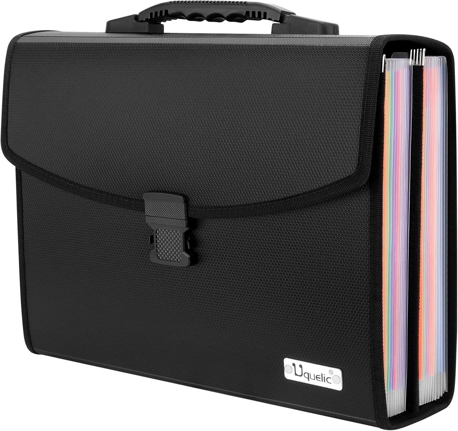 Uquelic 26 Pockets Expanding File Folder - Accordion Savor Document Organizer Folio Upgraded Durable Buckle, Base with Ergonomic Portable Handle/Large Legal Size Expandable File Organizer