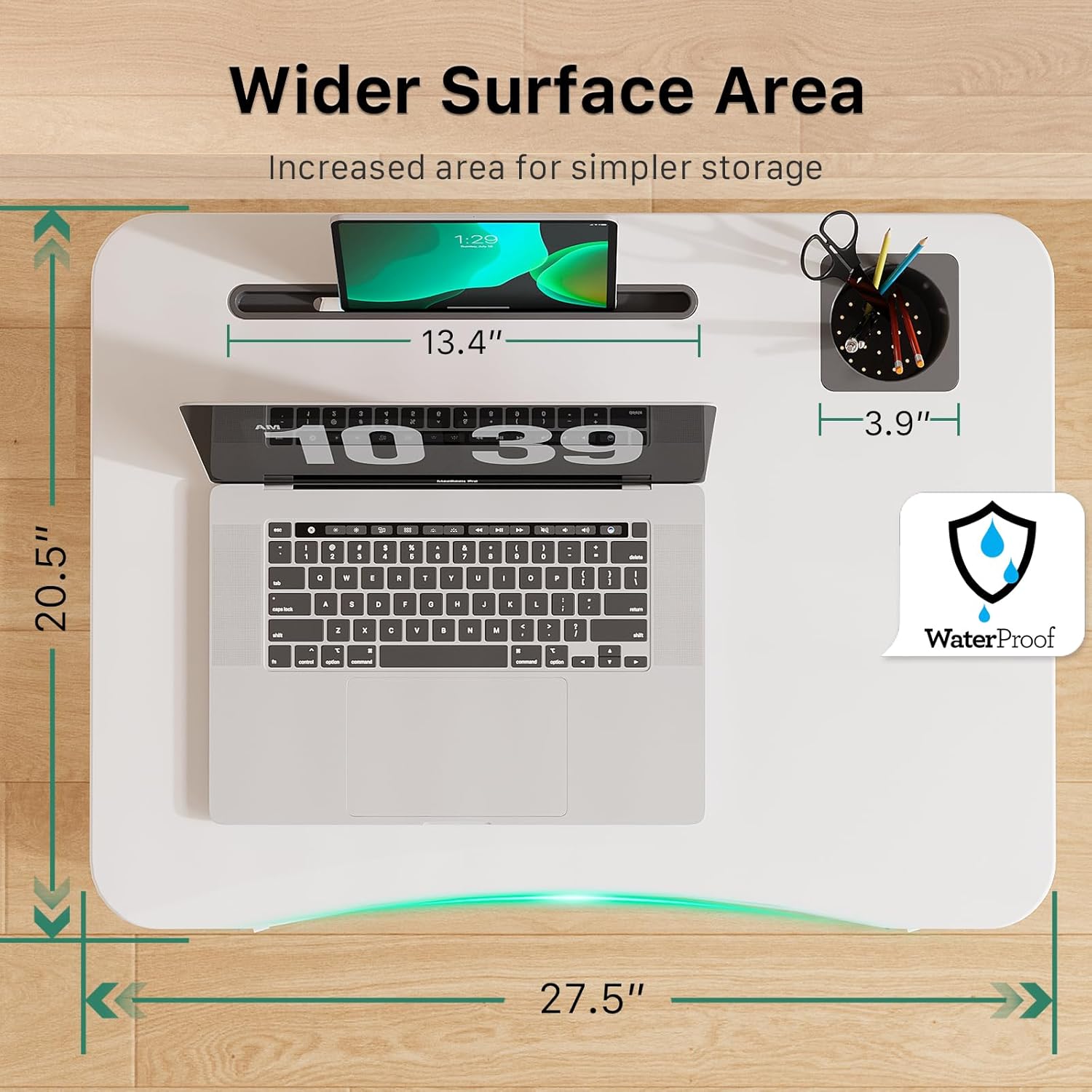 - Strong and Durable: The rolling laptop desk is made of 100% cold-rolled steel, can withstand up to 17.6 pounds of weight. The desktop (27.5'L x 20.5'W) is spacious enough to accommodate computers, laptops, mice, cups and other items. And the table top is made of E0 grade ecological protection wood, which is resistant to dirt and not easy to scratch