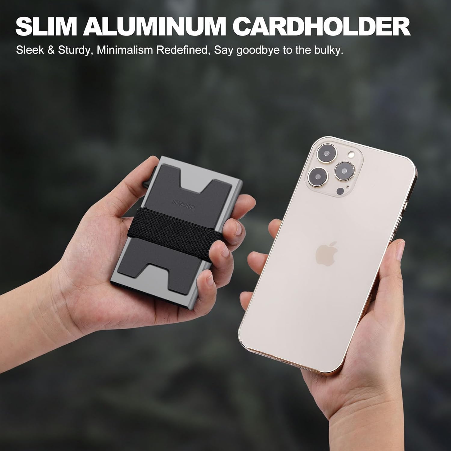 - 💳 ULTRA THIN PROFILE: The Minimalist tactical wallet is very thin and can be carried comfortably in a front pocket. The aluminum cardholder size is 3.9*2.5*0.5in,weight only 2.6oz . And expandable backplate designed for additional storage. Ditch the bulk, less is more.