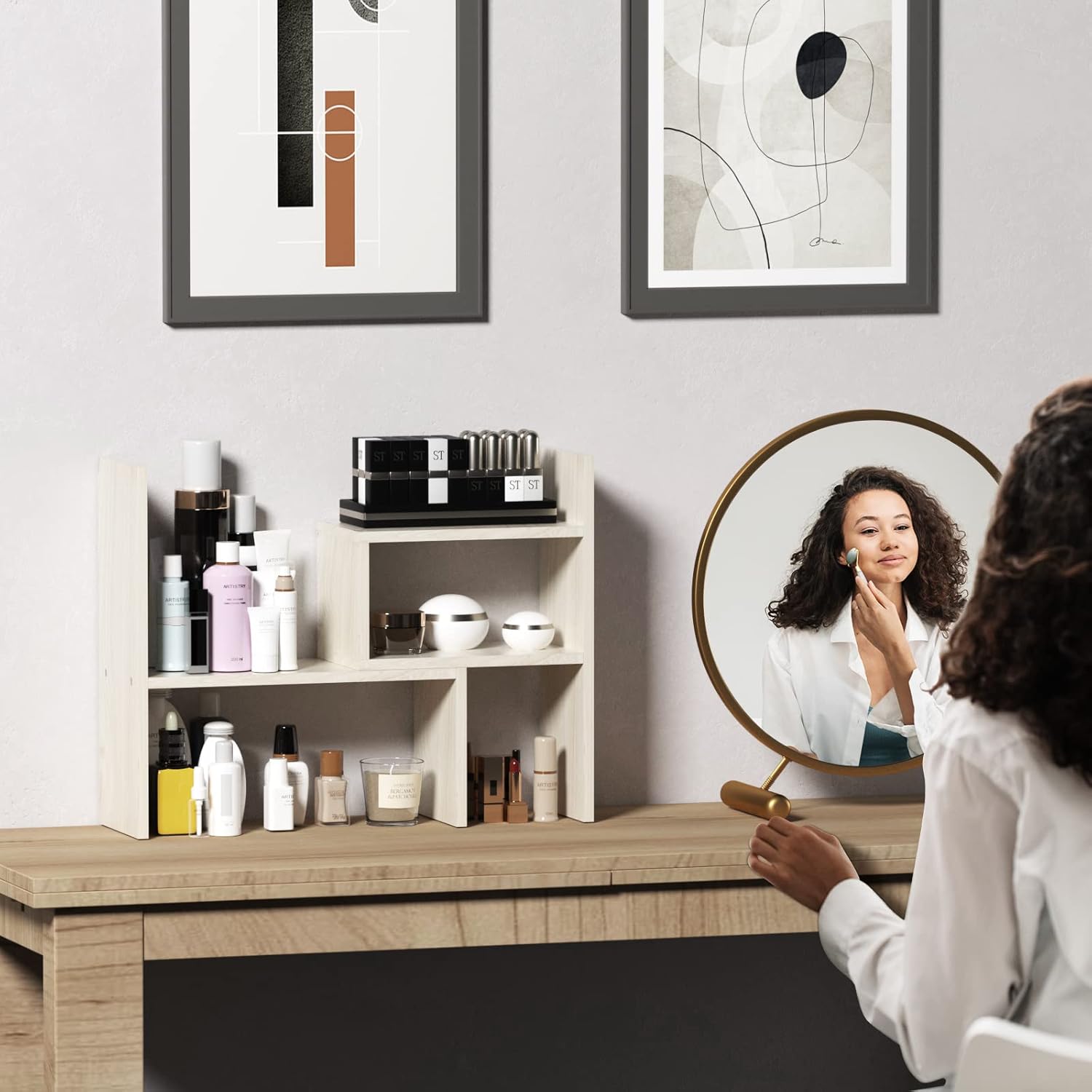 TY ARTS & CULTURE - Expandable Wood Desktop Storage Organizer Multipurpose Desk Bookshelf Display Shelf Rack Counter Top Bookcase for Office Home | Natural Beige