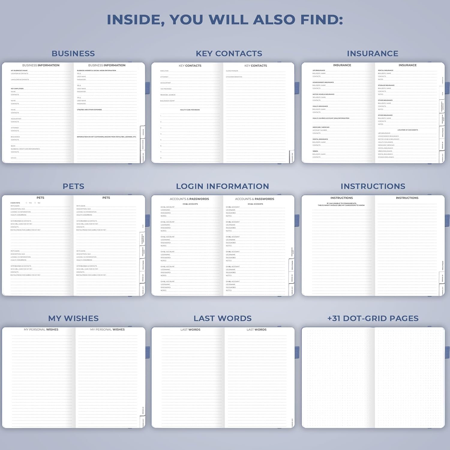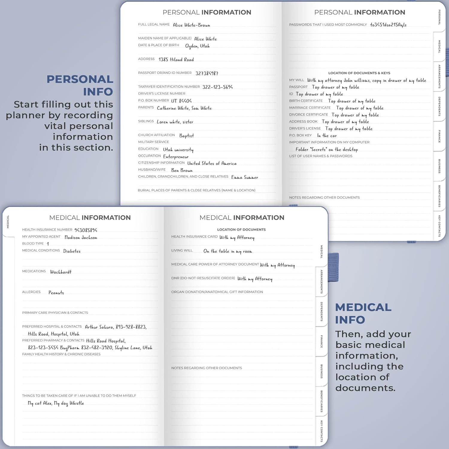- PREPARE DETAILED INSTRUCTIONS TO GUIDE YOUR LOVED ONES: This guided final arrangements planner is an easy-to-use tool for organizing all essential personal information, from medical data to passwords and financial records.