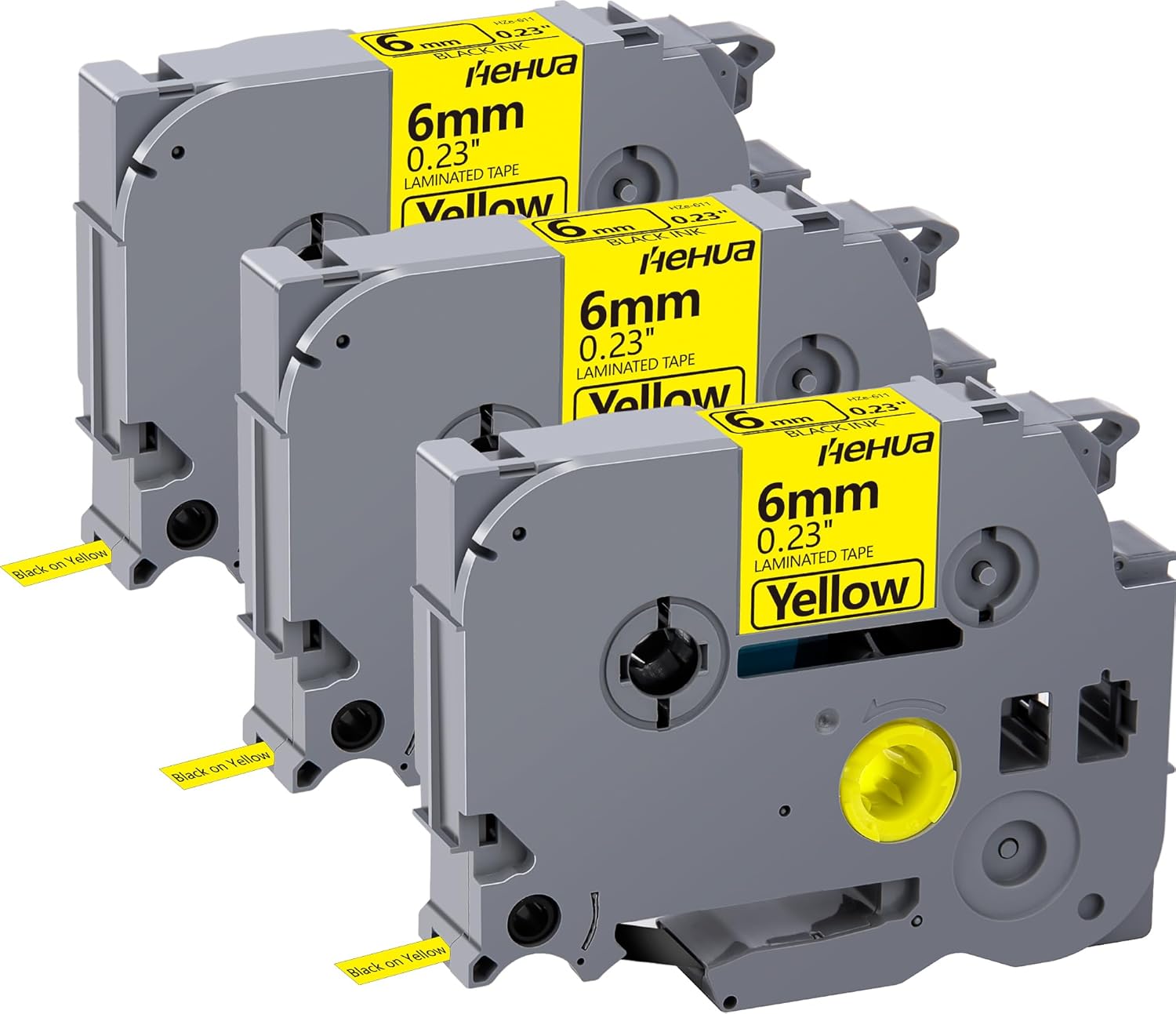Hehua 6mm 0.23 Black on Yellow Laminated Tape Compatible for Brother Label Maker Tape TZe-611 TZe611 TZ-611 TZ611 for P Touch PT D200 D220 D400 D450 D600 D610 P710BT, 1/4'' x 26.2ft, 3 Pack