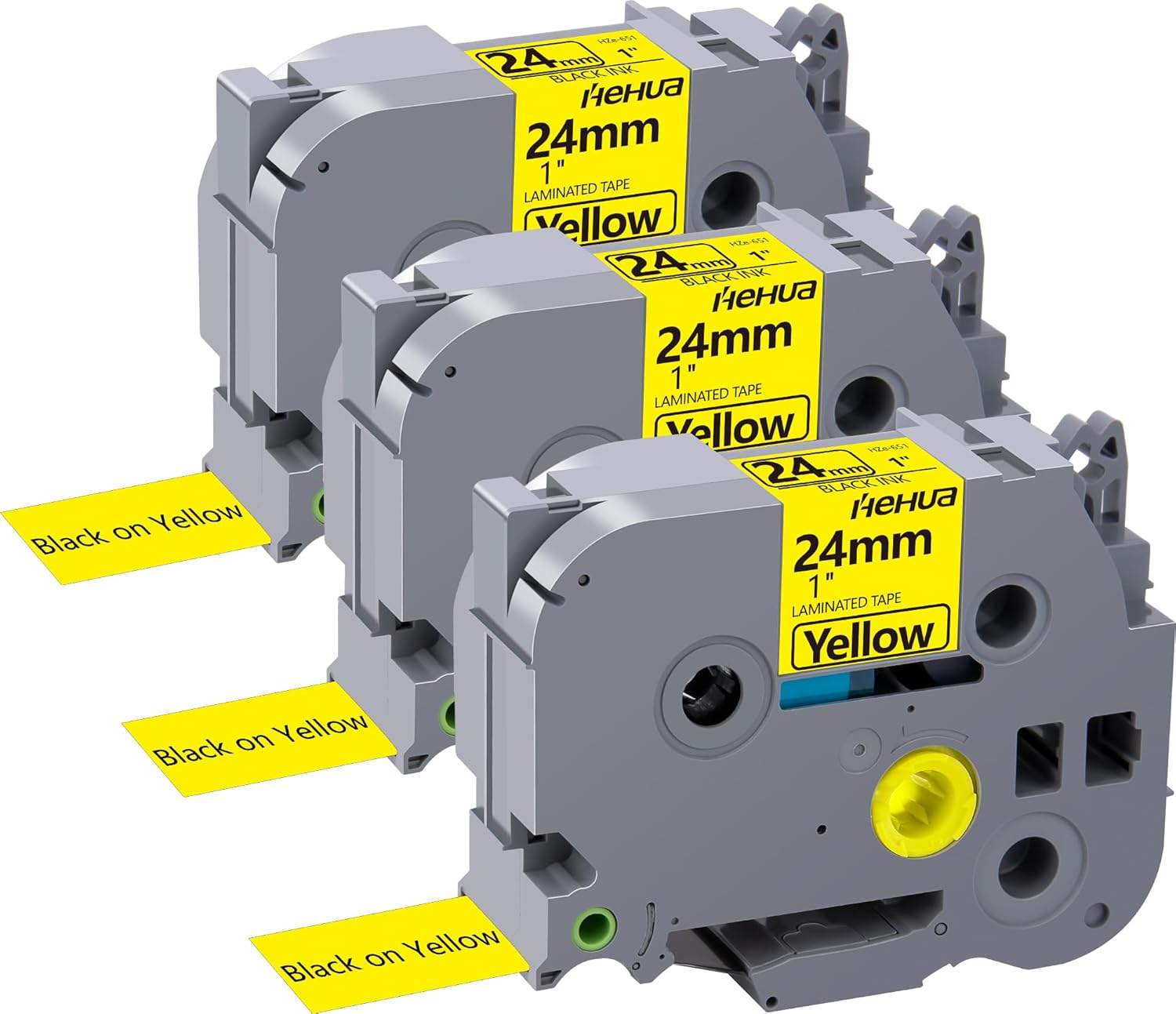 Hehua 24mm 0.94 Black on Yellow Laminated Tape Compatible for Brother P-Touch TZe-651 TZe651 TZ-651 TZ651 Label Maker Tape for Ptouch PT D600 D610 P710BT, 1'' x 26.2ft, 3 Pack