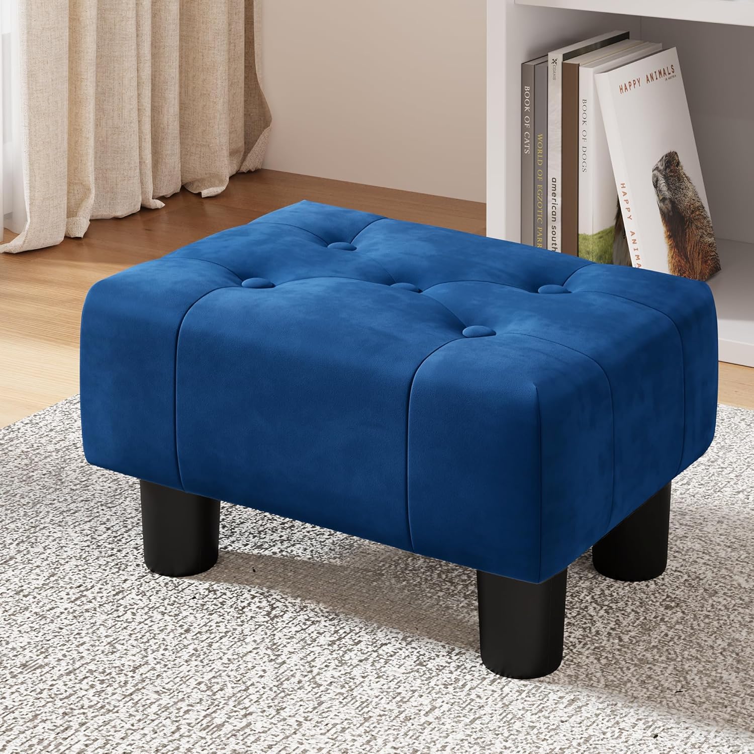 LUE BONA Small Tufted Foot Stool, Velvet Ottoman Elegant Foot Stools Ottoman with Plastic Legs, 9''H, Rectangle Footstool for Adult with Non-Slip Pads,Foot Rest for Living Room,Couch, Navy Blue