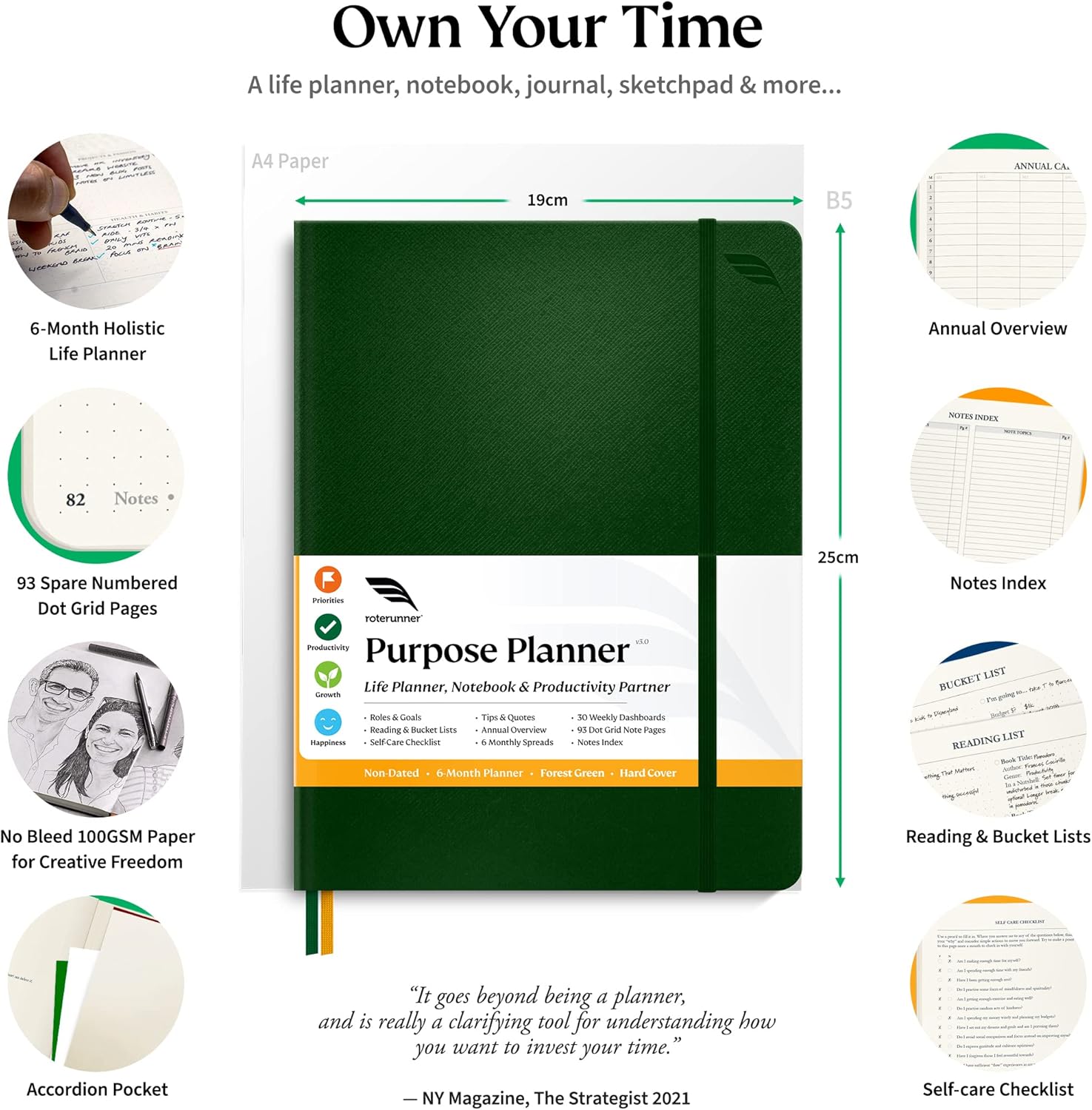 Roterunner Purpose Planner Notebook B5 7.5”x9.8” Undated Planner 2025 Daily Weekly and Monthly Productivity Goal Setting Tool for Work Home ADHD Planner for Adults Self Care Journal