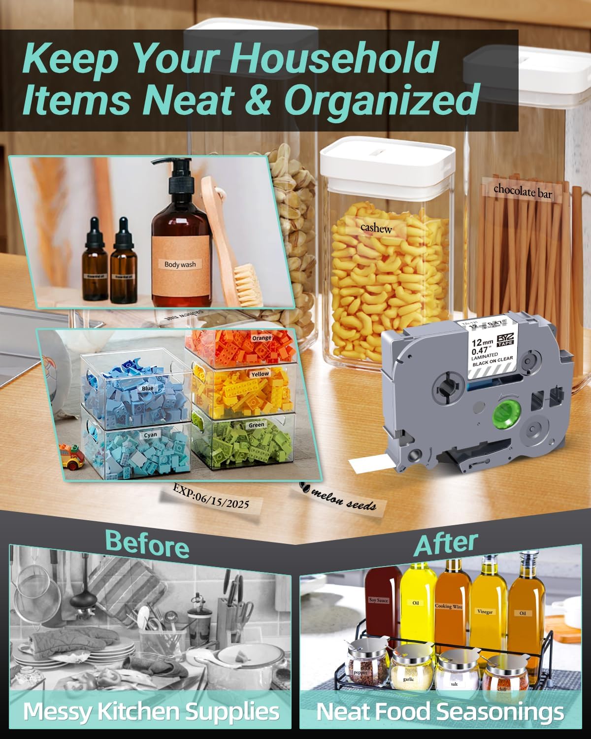 - Label maker tape clear tze131, resist to Water / Fading / Temperature / Abrasion / Grime / Grease / Chemical, replace p touch label tape clear tze-131.