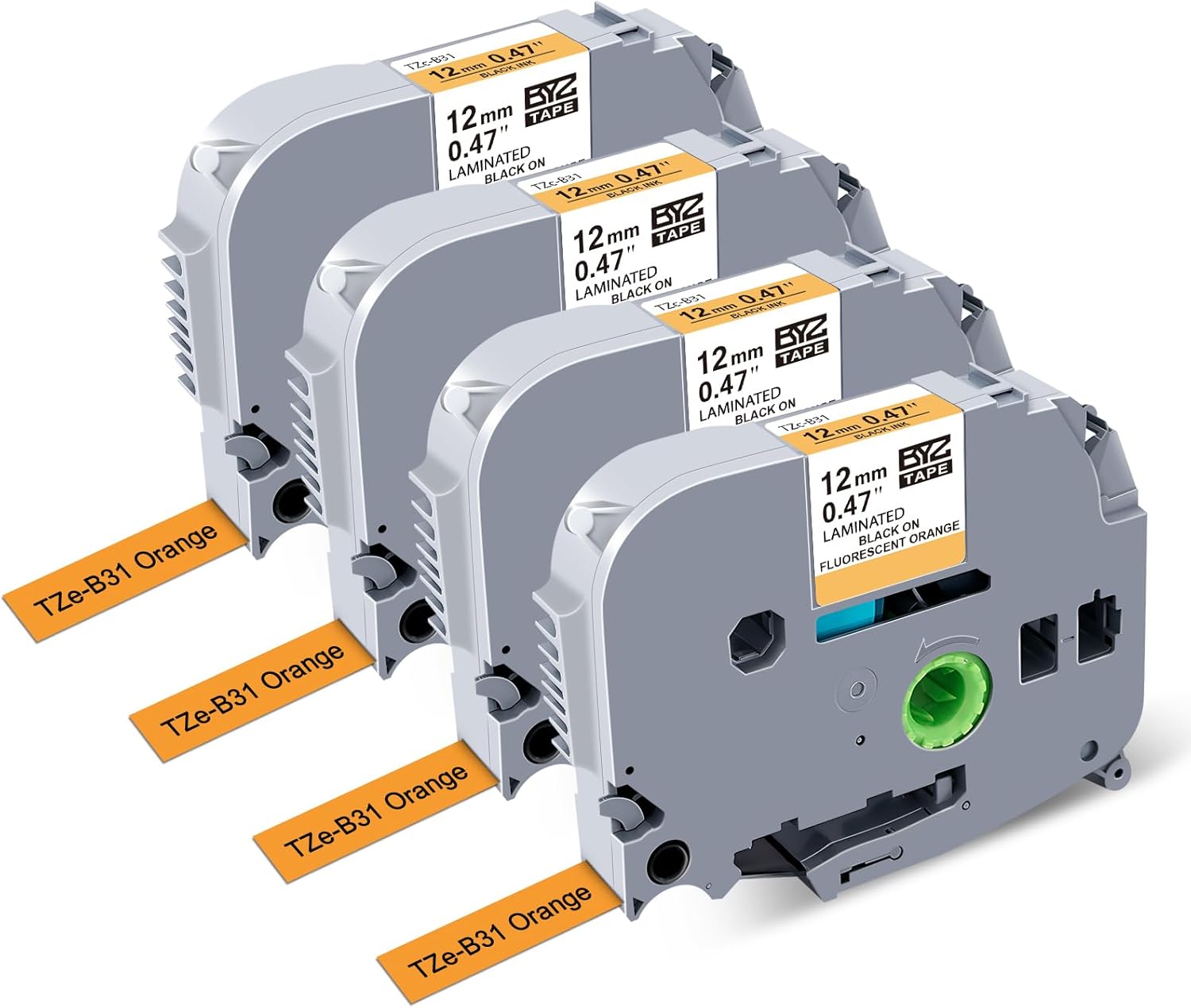 - 🛒4-Pack Compatible for Brother P Touch TZe-B31 Label Maker Refills Tape, Black Ink on Orange Fluorescent Tape; Size: 1/2 inch(12mm) width, 26.2 feet(8m) length of each TZe-B31 Label Tape.