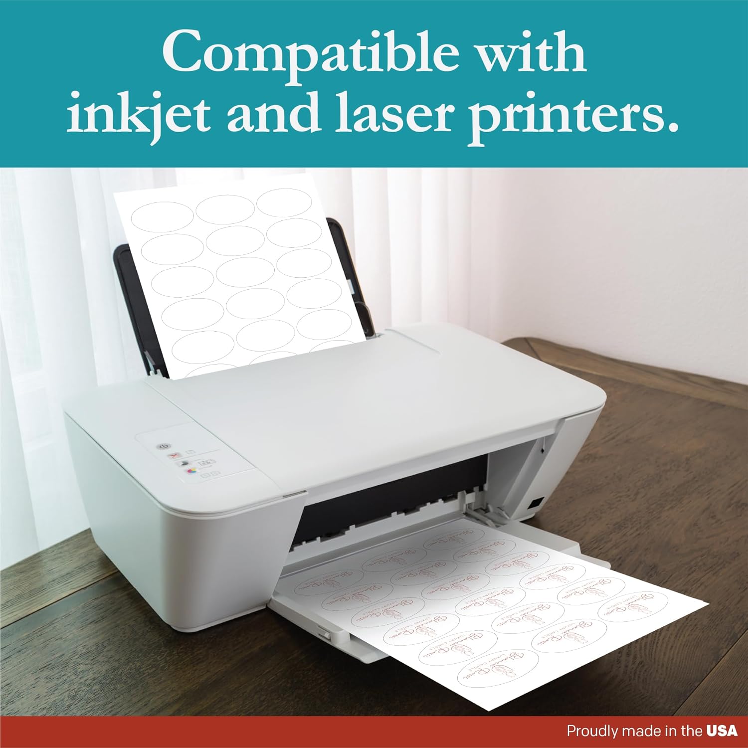 Premium Label Supply White Sticker Oval Labels – 2.5" x 1.5" Oval – Laser/Inkjet Compatible – (18 per Sheet), 500 Sheets – 9,000 Total Adhesive Labels