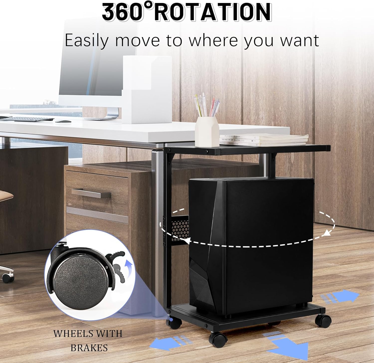 - Efficient and Practical: The four 360-degree swivel casters are easy to move, and the casters with brakes can stay still when in use. And the tower stand lifts the PC case off the ground, which is good for airflow and speeds up the cooling of the computer tower.