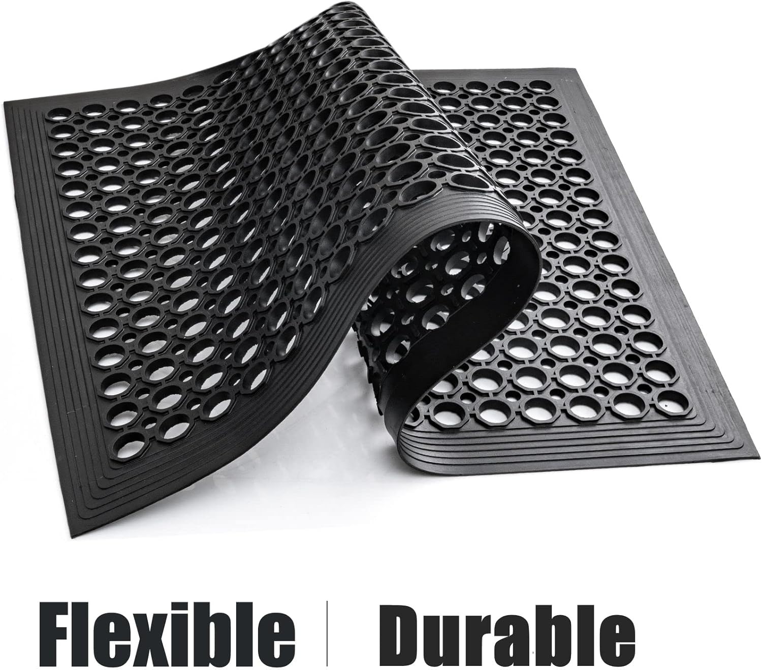 - - The drainage holes in these rubber floor kitchen mats can reduce the amount of slippery liquids and oils left on the floor, Anti Fatigue Design for backside to keep the Drainage Mat Stay in place.