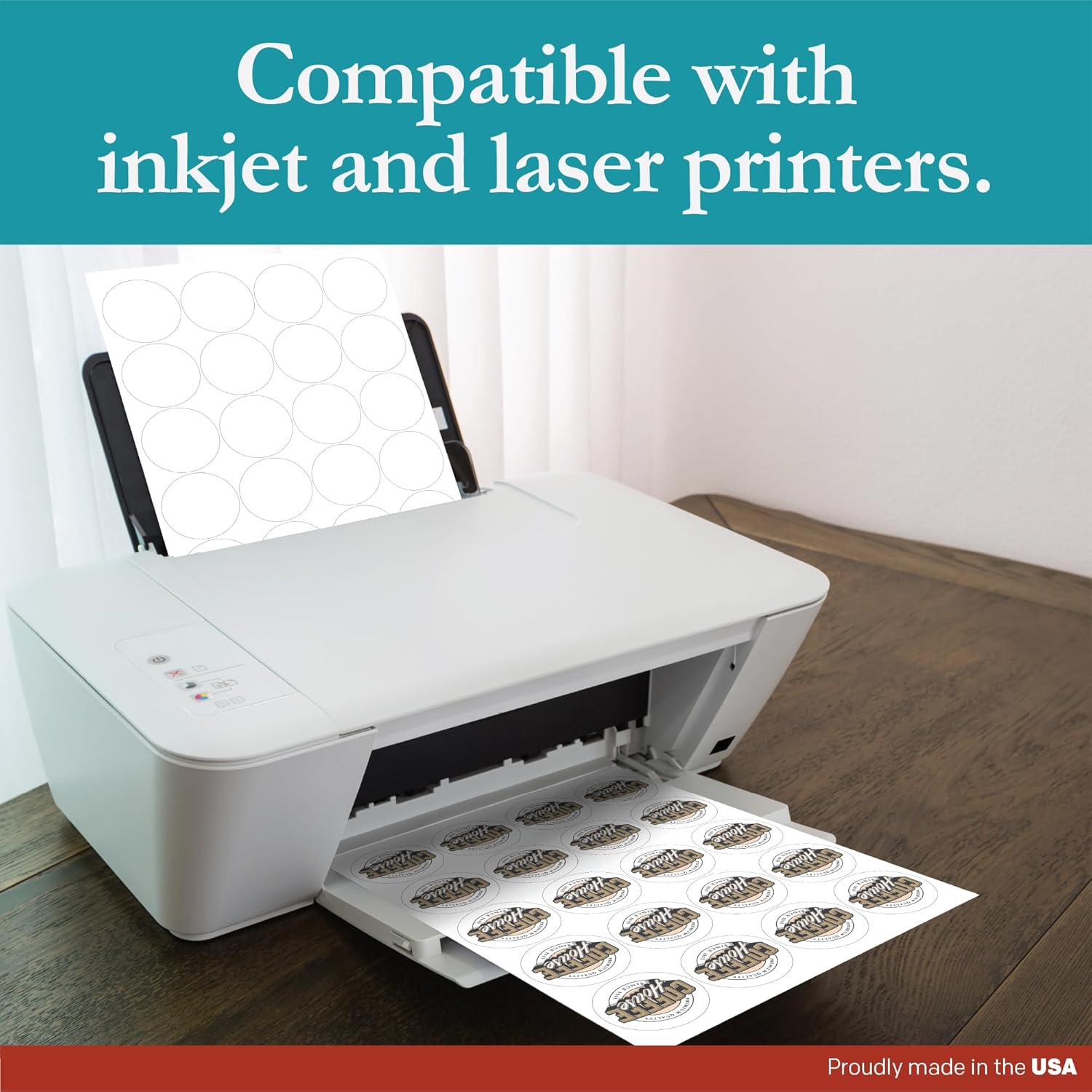 Premium Label Supply White Sticker Round Labels – 2" Circle – Laser/Inkjet Compatible – (20 per Sheet), 500 Sheets – 10,000 Total Adhesive Labels