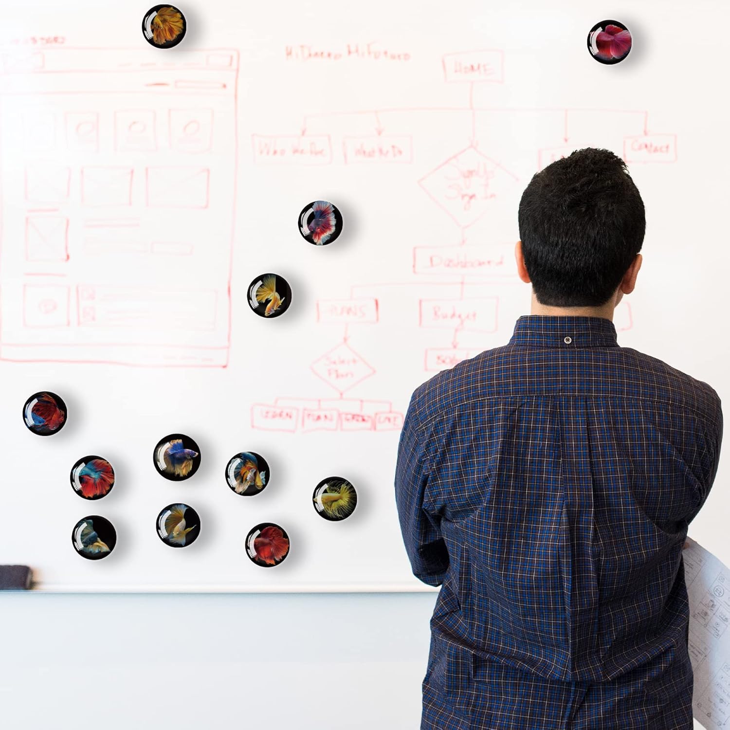 12Pcs Glass Strong Magnetic Refrigerator Magnet Fridge Sticker,Fish Fridge Magnets Decoration for Crafts,Strong Fridge Magnets for Kitchen, School,Office Whiteboard, Cabinet and Dishwasher