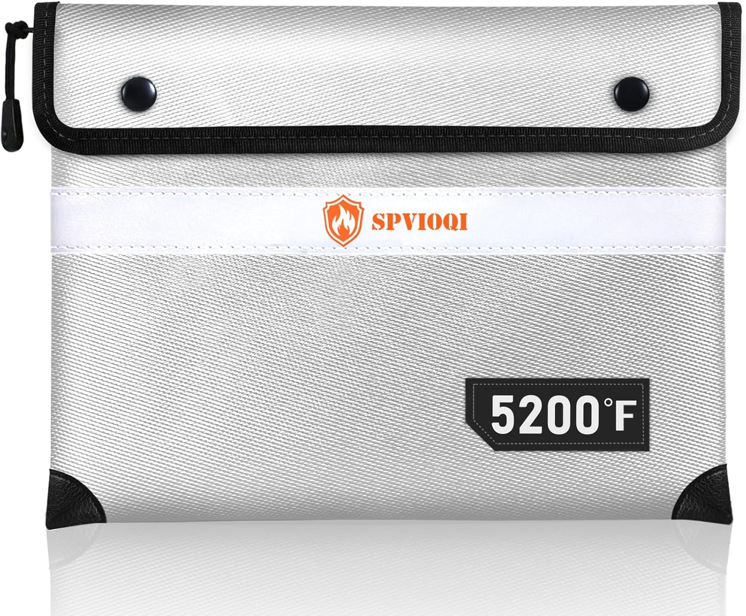 - 360° FIREPROOF DESIGN: This SPVIOQI (Inside pocket size: 10.9*8.2 in) fireproof document bag mainly adopt a 8-layer function material structure of fire protection and heat insulated; The fireproof money bag is sewn with flame-retardant thread and fireproof hemming, to prevent fire from damaging the fireproof bag from the edge, closure by velcro flap, plus two fireproof metal snaps, so that its zipper completely prevent fire, which make the fire safe bag 360° fire resistant