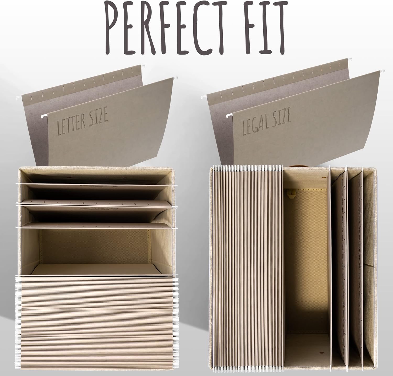 - Portable File Organizer Box: Extremly durable with reinforced bottom makes the file folder box super stable. Easy to clean linen fabric exterior and a practical lid keeps any dust away from your documents and files