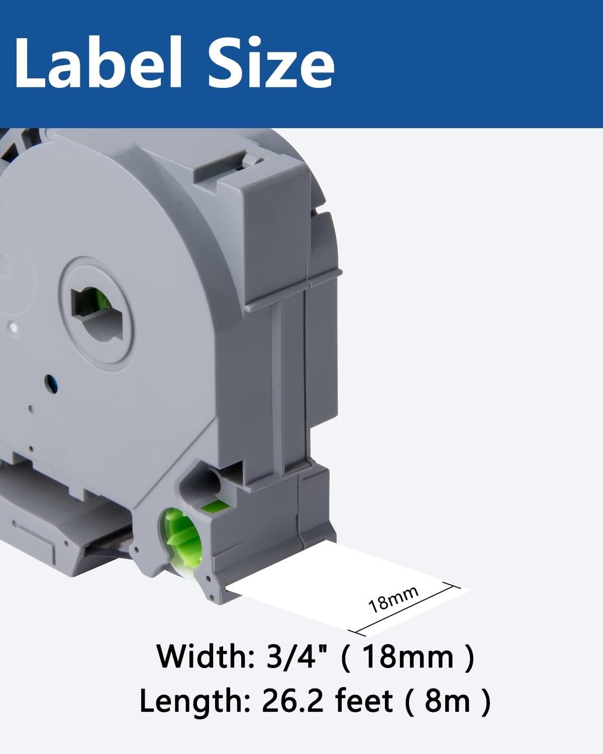 - Size - 3/4" width x 26.2' length ( 18mm x 8m ) each 18mm clear label maker tape. Color - Black ink on clear tape