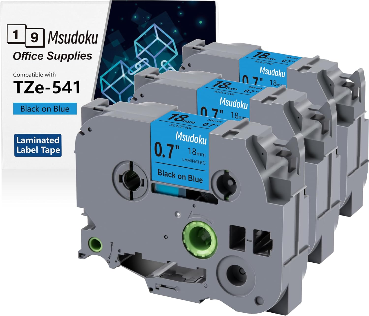 Tze Tz Tape 18mm 0.7 Laminated Blue Compatible for Brother P Touch Label Maker Tape TZe-541 TZe541 Label Tape for PT D400 D600 D610 P710BT, Black on Blue, 3/4 Inch x 26.2 Feet, 3-Pack