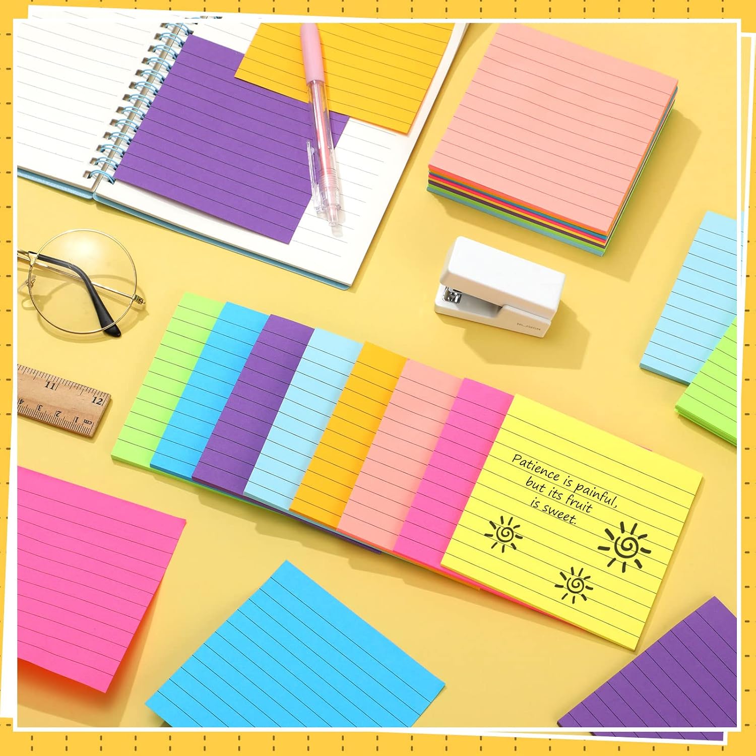 Yexiya 64 Pcs Lined Sticky Notes Self Stick Notes with Lines Bright Assorted Colors Sticky Pad for Home Office Products Post Memos, 1920 Sheets(4 x 4 Inch,Chic Color)