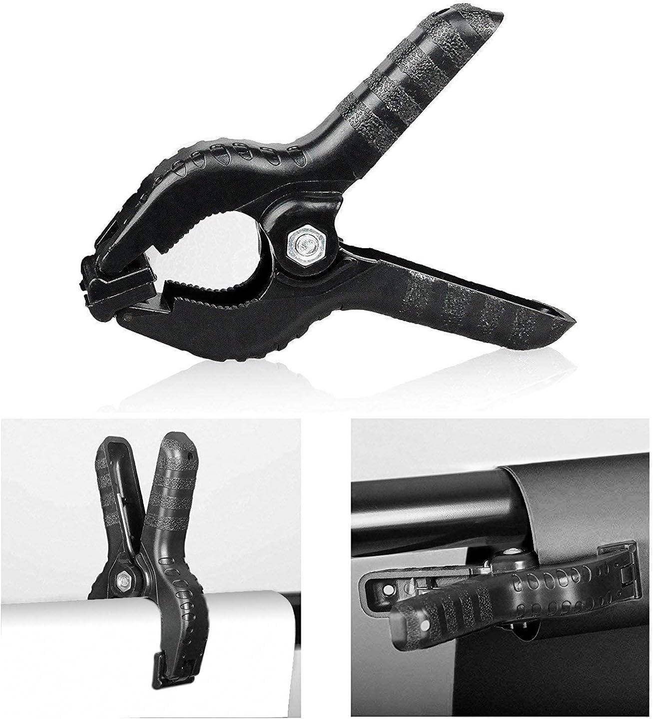 - (2) x Photo Spring Clamp 4.5 inch Heavy Duty Spring Clamps To Hold Muslin,Canvas,Paper Backdrops and other backdrops you need.(4) xBackground Multifunctional Clips Holder Helps Securely Tighten Background Simply attach the screen to the clips at even intervals to keep the screen tight and wrinkle free.