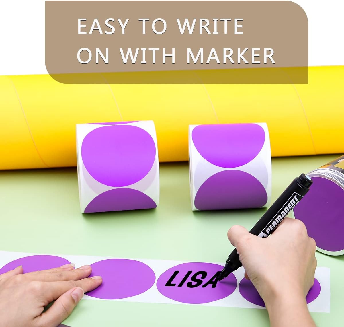 - 500pcs coding adhesive labels on a roll. 3” diameter,Purple Color-Code Dot Stickers.