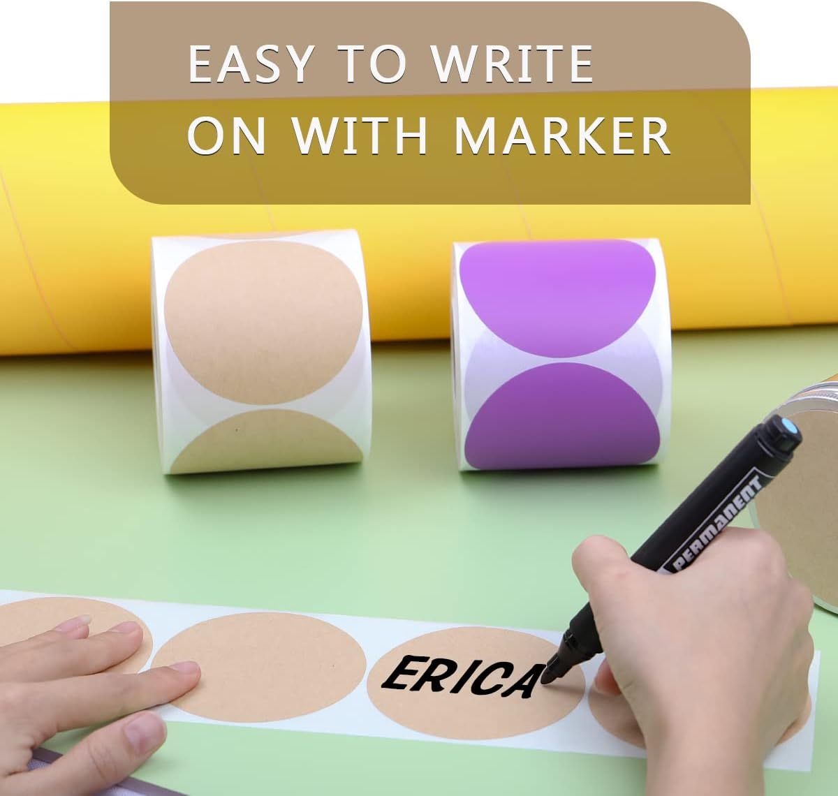 - 500pcs coding adhesive labels on a roll. 3” diameter, Kraft paper Color-Code Dot Stickers.