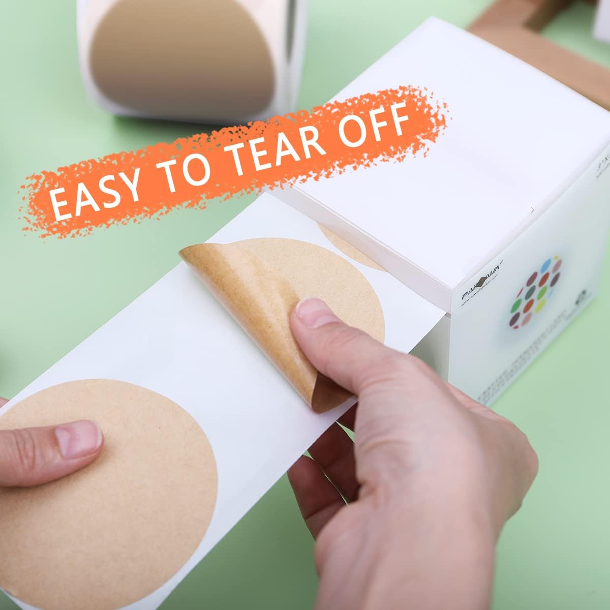 PARLAIM 3 Inch Round Color-Code Dot Stickers, 500 per Round Color Code Labels,Kraft Paper Dispenser Box Roll dots Label Inventory Circle Stickers(Kraft )
