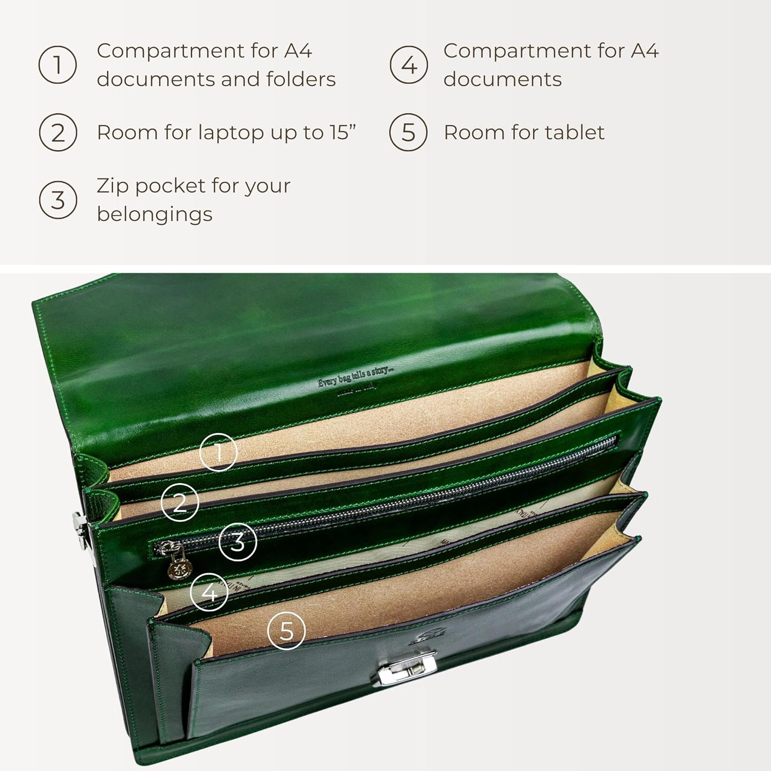 - ✔️ MADE TO LAST – the leather bag is handmade in Italy using craftsmanship secrets passed down through generations. Reliable hardware, tear-resistant lining, YKK zippers – dedication and ATTENTION TO DETAIL is what ensures incredible look of a quality leather accessory.