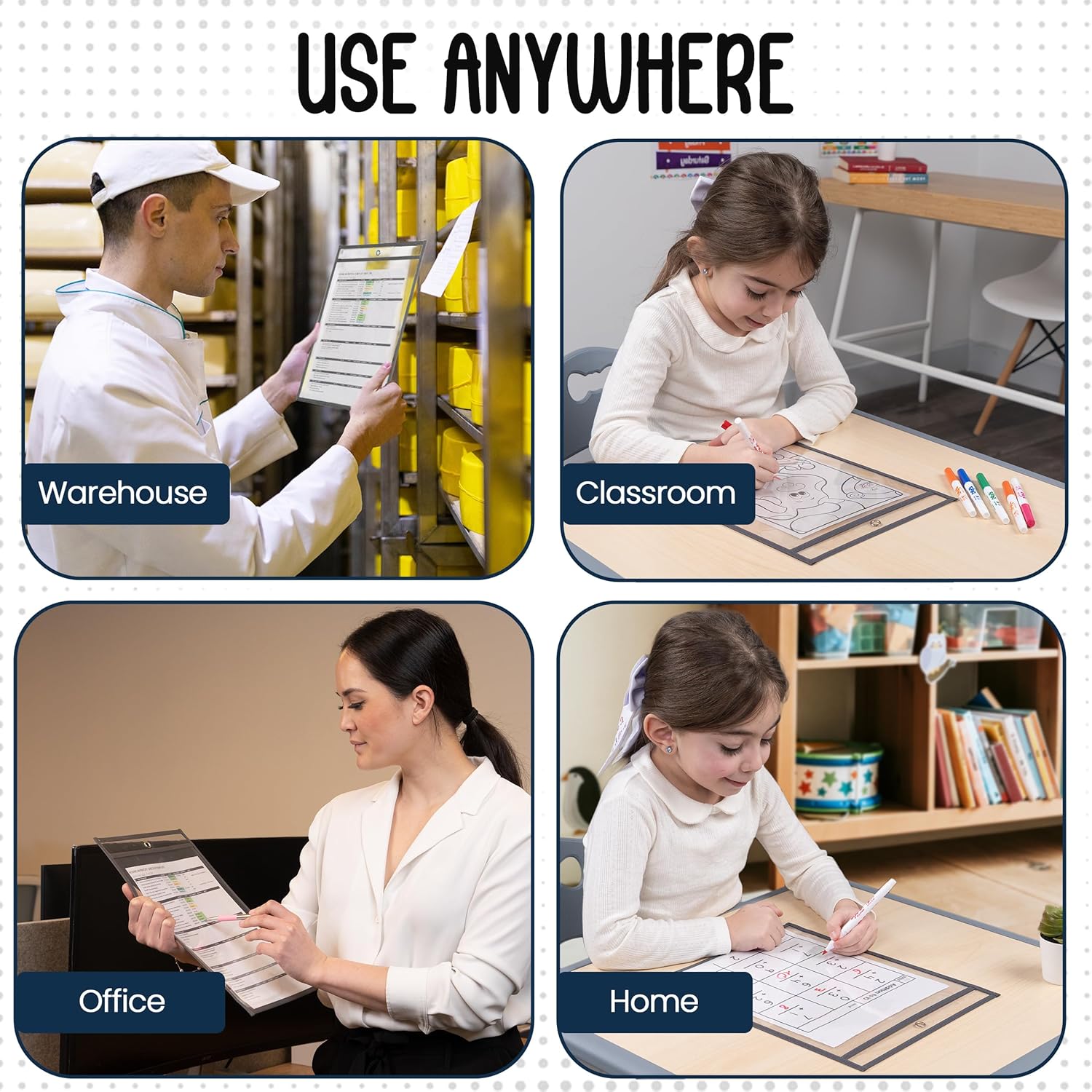 - Reusable - With their dry erase surface, the clear document sleeves are completely reusable. Simply insert the sheet and endlessly write on the front of the ticket holder and erase it when no longer needed.