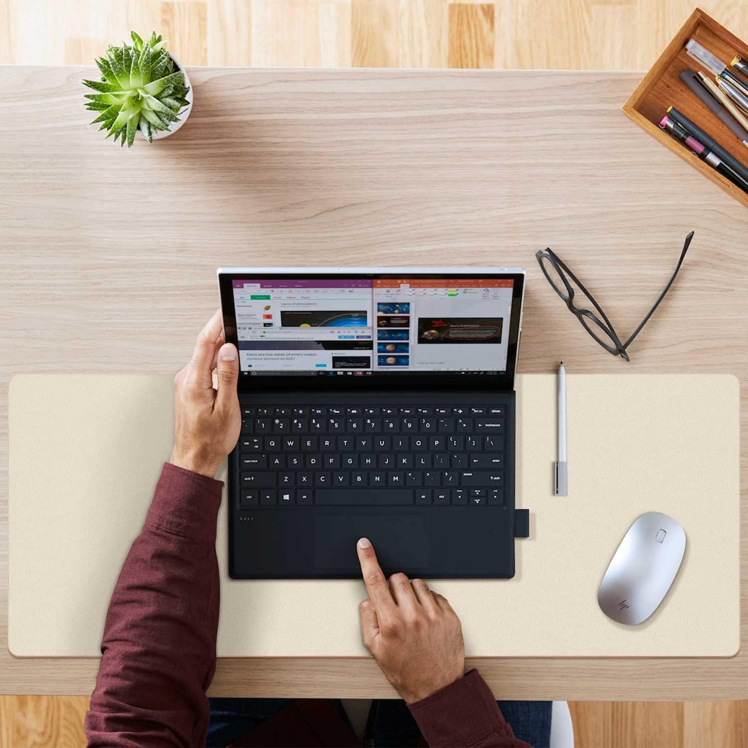 Aothia Double-Sided PU Leather Desk Pad - Non-Slip Large Mouse Pad & Desk Mat for Office, Home - Waterproof, Easy to Clean, Durable Dual-Sided Surface (31.5" x 15.7", Beige)