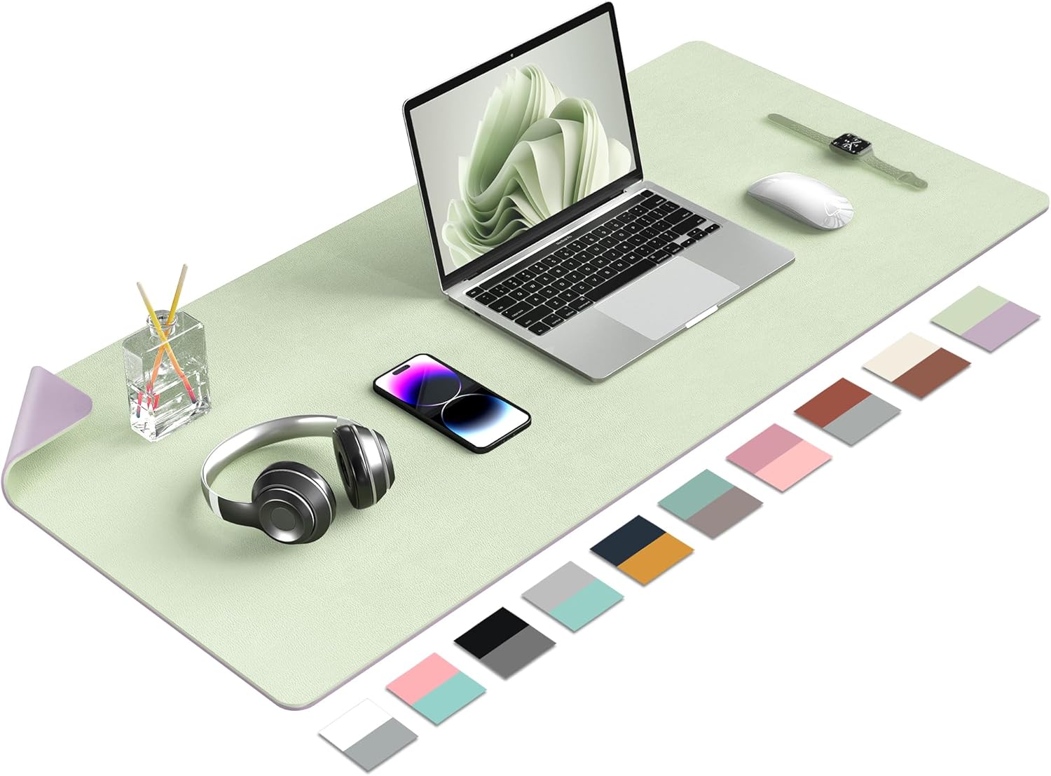 Aothia Double-Sided PU Leather Desk Pad - Non-Slip Large Mouse Pad & Desk Mat for Office, Home - Waterproof, Easy to Clean, Durable Dual-Sided Surface (36" x 17", Matcha Green)