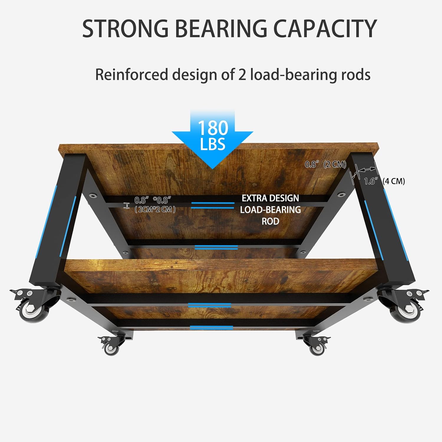 Natwind 2 Tier Laser Printer Stand,23.6''x23.6''x12.6'' Large Printer Table Copier Stand,Heavy Duty Rolling Printer Cart with Wheels for Home Office (Retro)