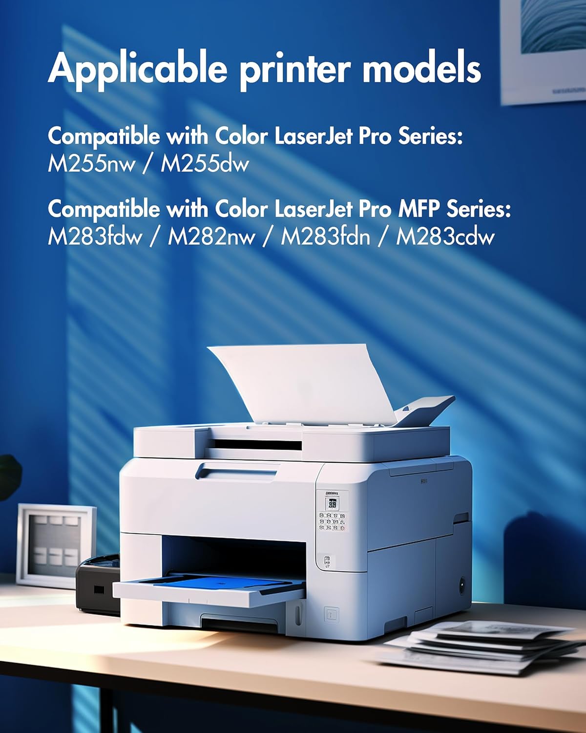- 2. Printer Compatibility: Compatible with HP Color LaserJet Pro MFP M283fdw MFP M283cdw M283fdn, Color Pro MFP M282nw,Compatible with HP Color Laserj Pro MFP M255dw, M255nw