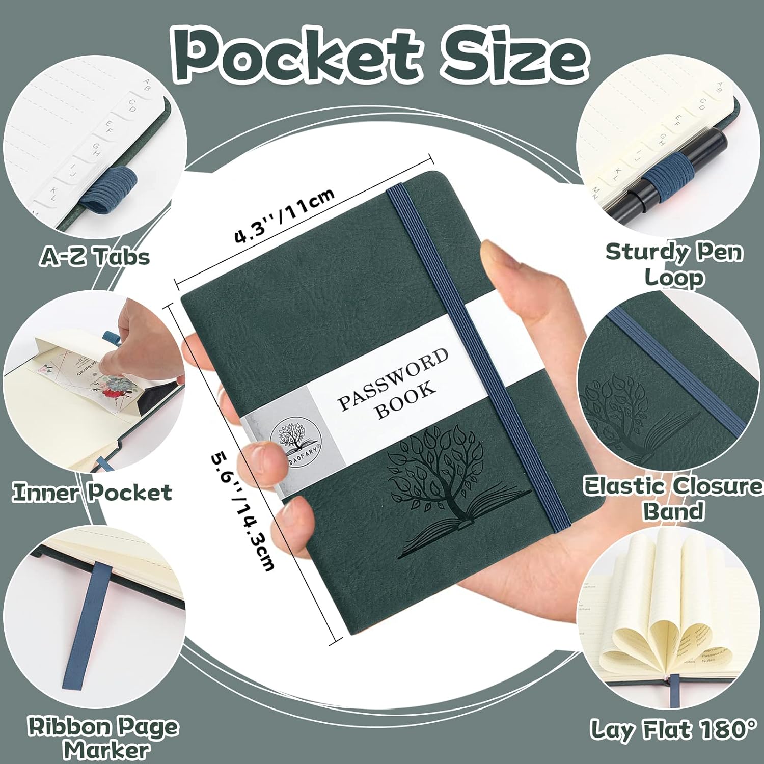 - Small Password Book: 5.9*4.3 In Pocket size design is convenient to carry around. password keeper book looks like a normal diary, you can record information with more confidence. Of course you can also store the password book in a safe place to avoid losing it.