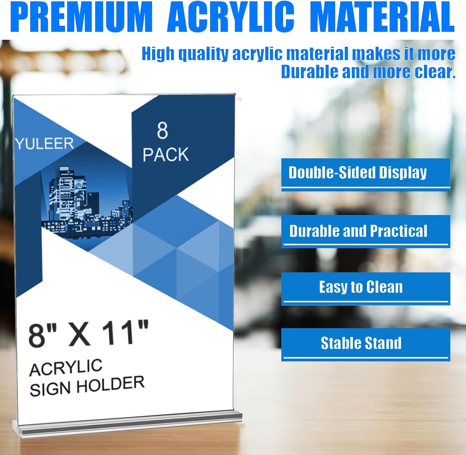 YULEER 8 Pack Acrylic Sign Holder 8.5x11, Clear Double-Sided Display Stand, Plastic Paper Frame for Menu, Flyer, Picture, Office Desk, Wedding Sign Holders