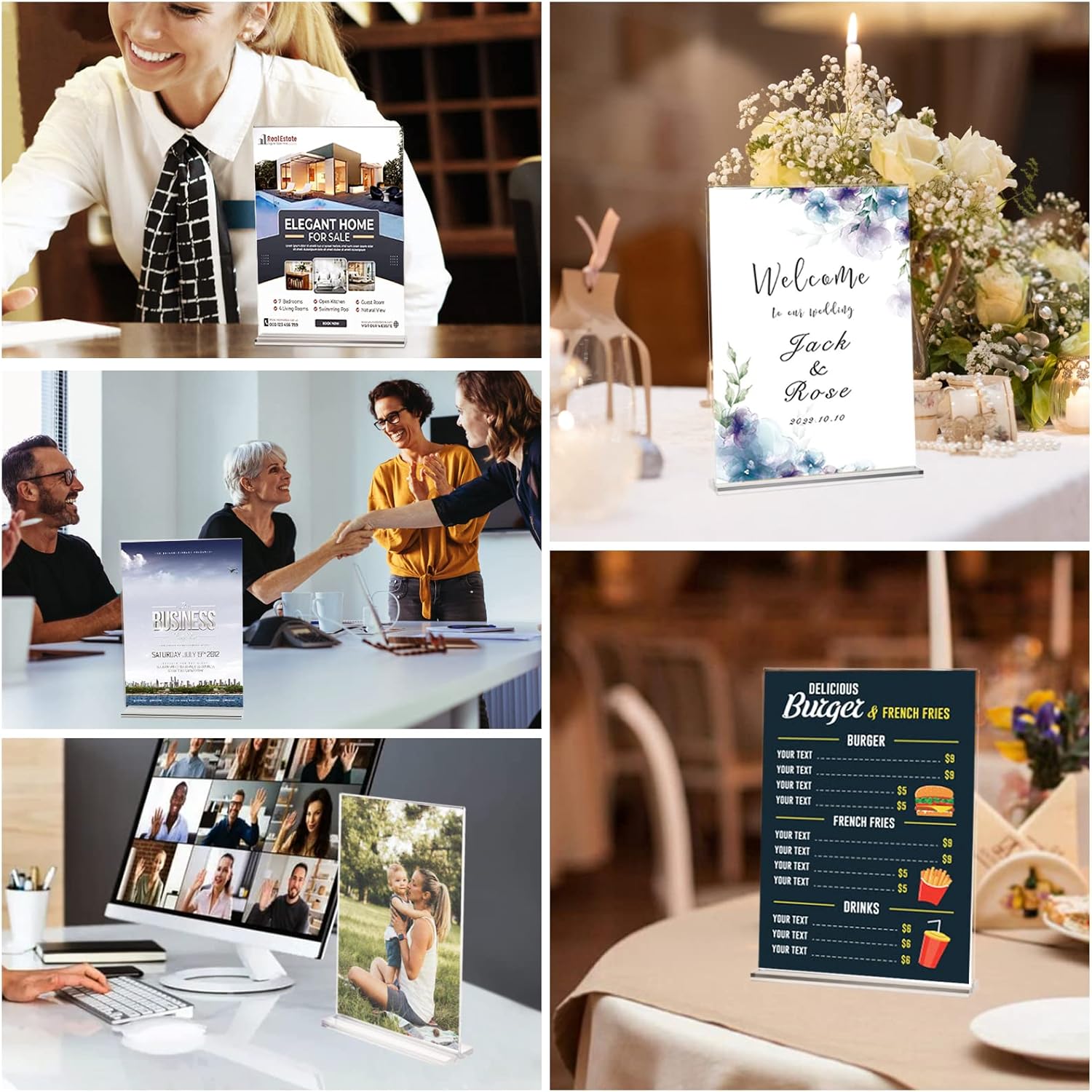 - Crystal-Clear Acrylic Sign Holder:Made of premium acrylic, these sign holders offer high transparency, durability, and a professional display for any 8.5x11 paper or flyer.