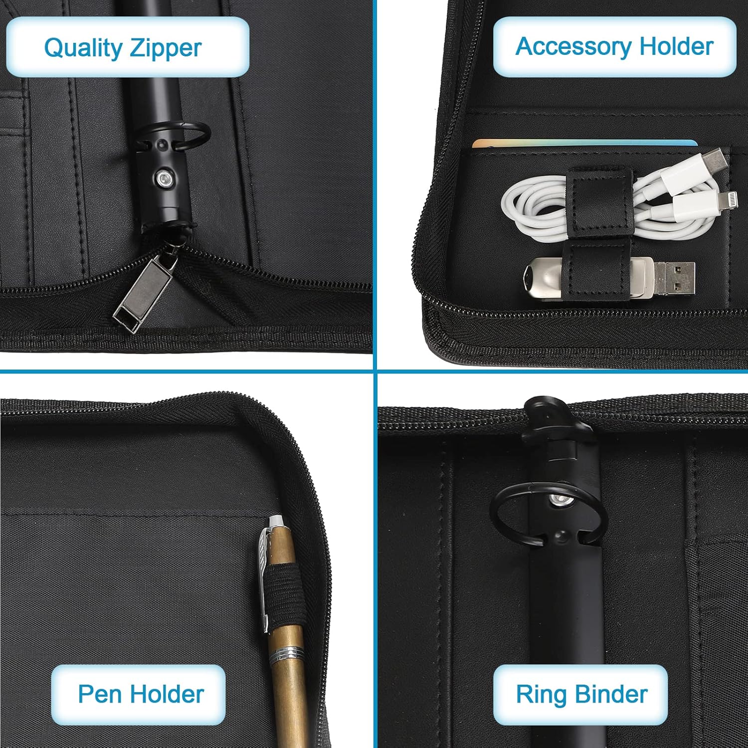 Yodo Zippered Portfolio 3-Ring Binder Business PU Leather Portfolio Interview Resume Legal Document Organizer Notepad Folder Padfolio for Men Women