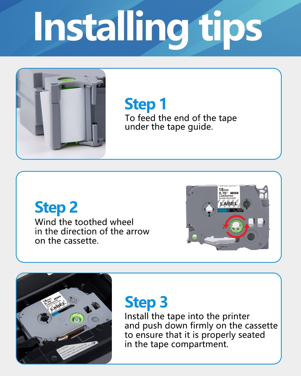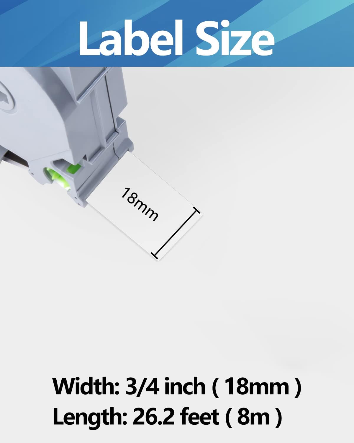 - Versatility: The tze 18mm tape with standard adhesive that is designed to stick to a variety of surfaces, including organizing files and folders, labeling storage containers, making it ideal for labeling items both indoors and outdoors