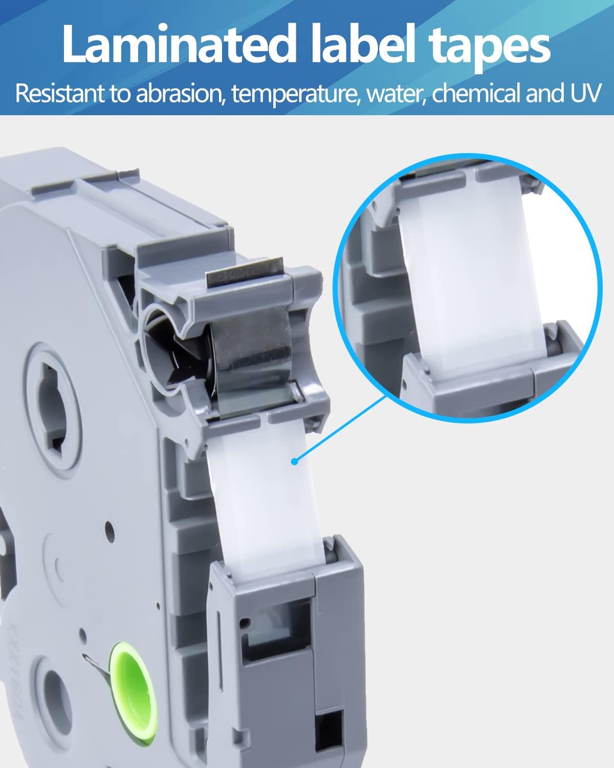 - Versatility: The tze 9mm tape with standard adhesive that is designed to stick to a variety of surfaces, including organizing files and folders, labeling storage containers, making it ideal for labeling items both indoors and outdoors