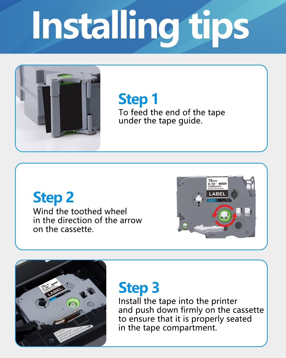 - Versatility: The tze 18mm tape with standard adhesive that is designed to stick to a variety of surfaces, including organizing files and folders, labeling storage containers, making it ideal for labeling items both indoors and outdoors